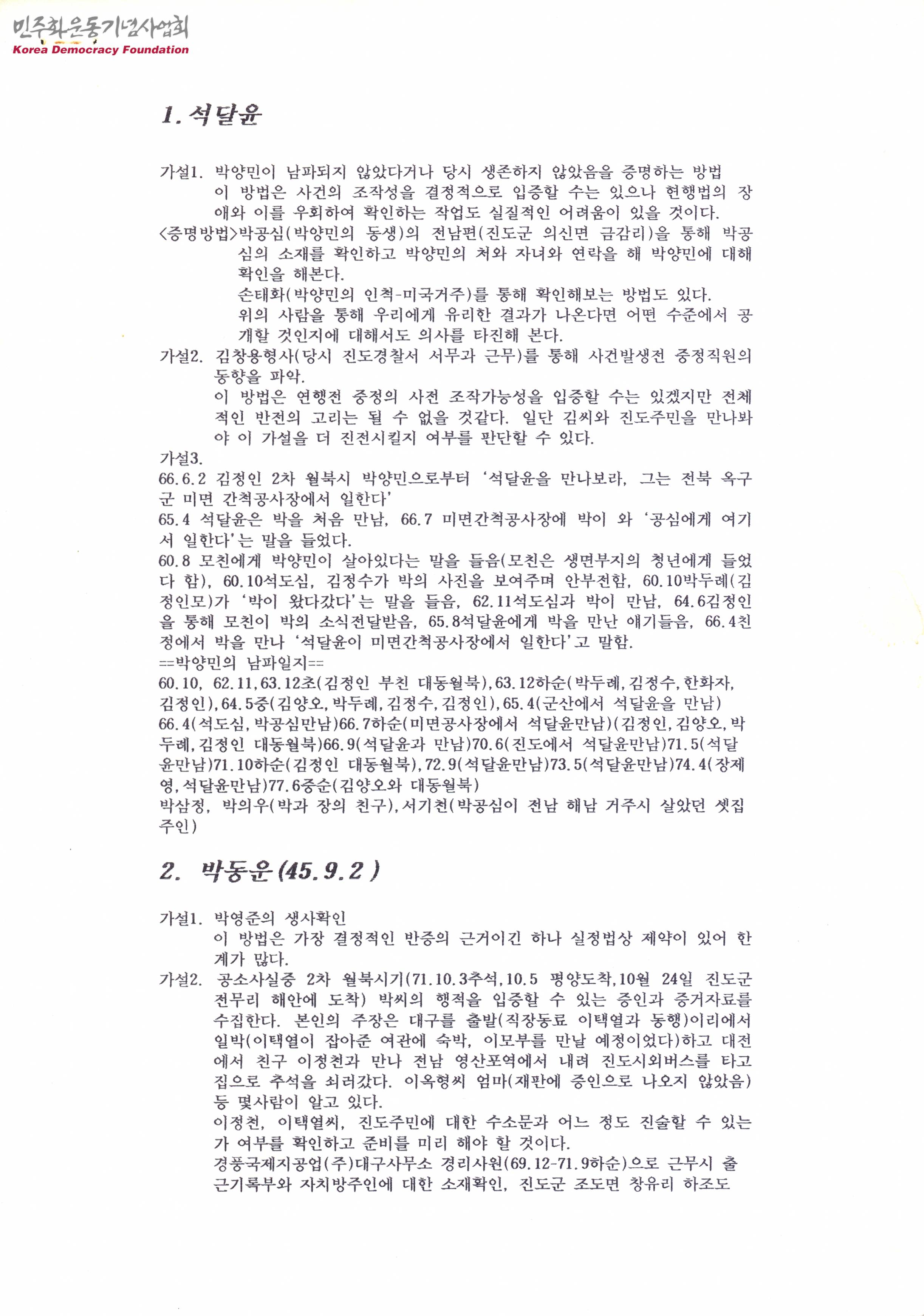 - 석달윤, 박동운, 이상철, 함주명씨와 관련한 가설내용이 수록된 문서