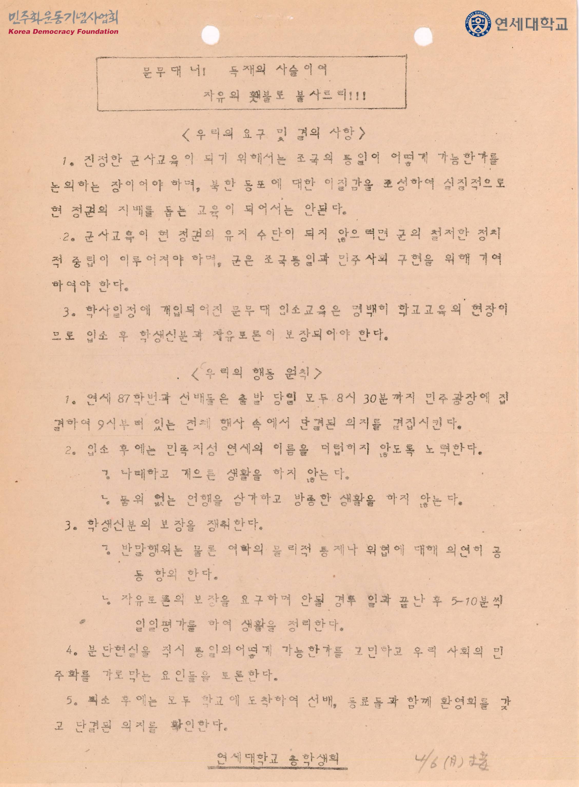 문무대 너! 독재의 사슬이여 자유의 횃불로 불사르리!!!