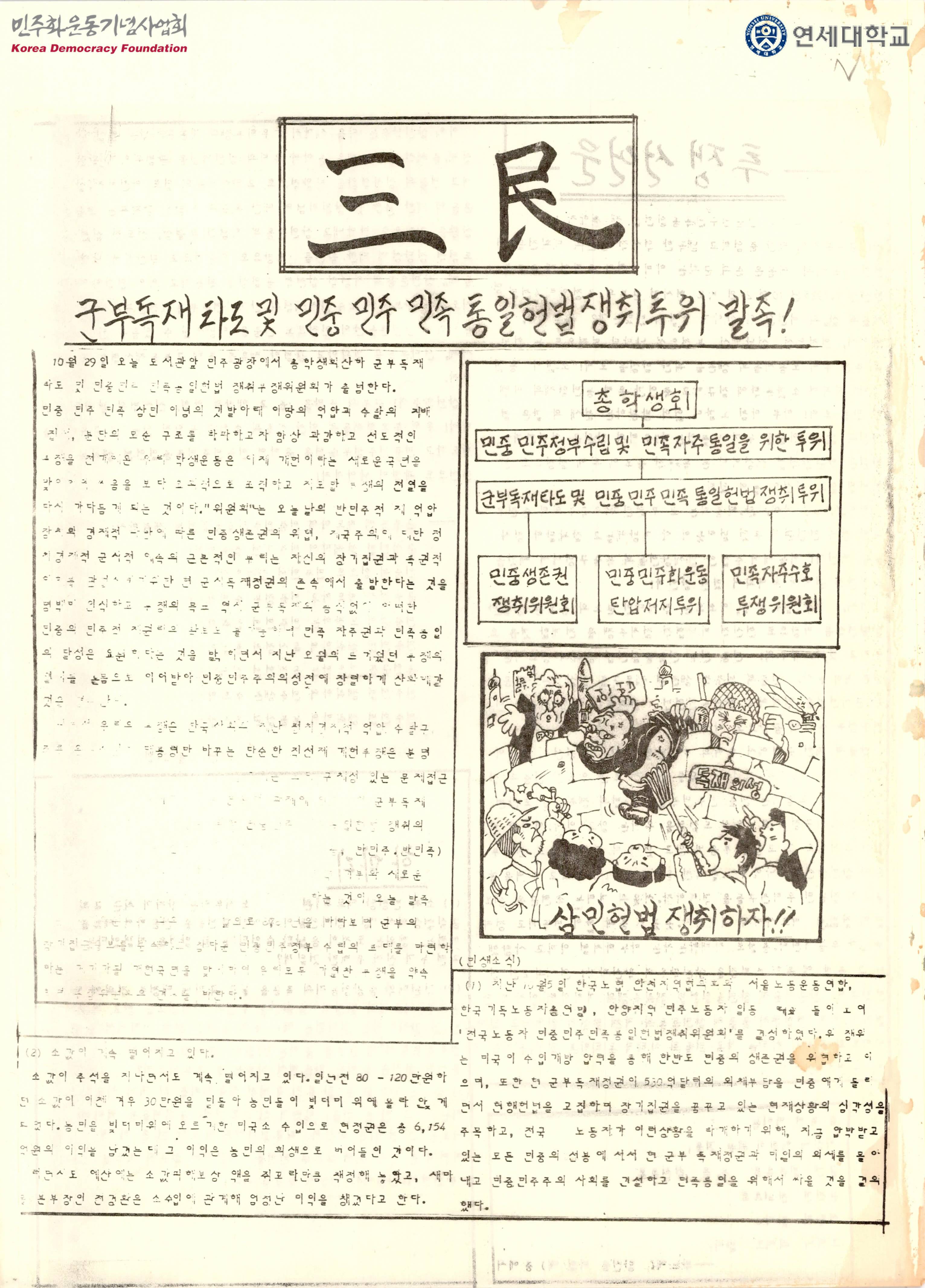 三民 : 군부독재타도 및 민중민주민족 통일헌법쟁취투위 발족!