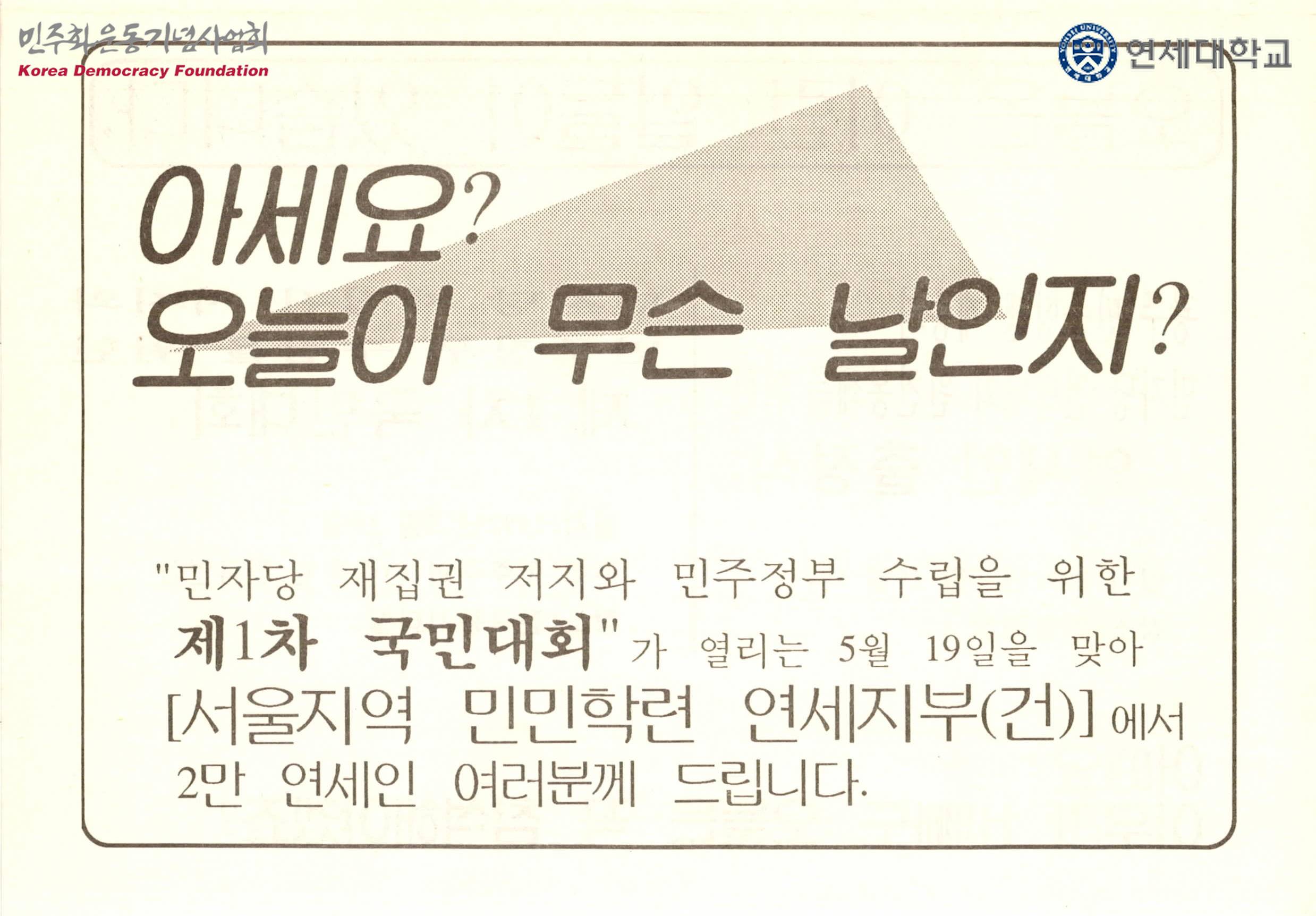 아세요? 오늘이 무슨날인지? : 민자당 재집권 저지와 민주정부 수립을 위한 제1차국민대회