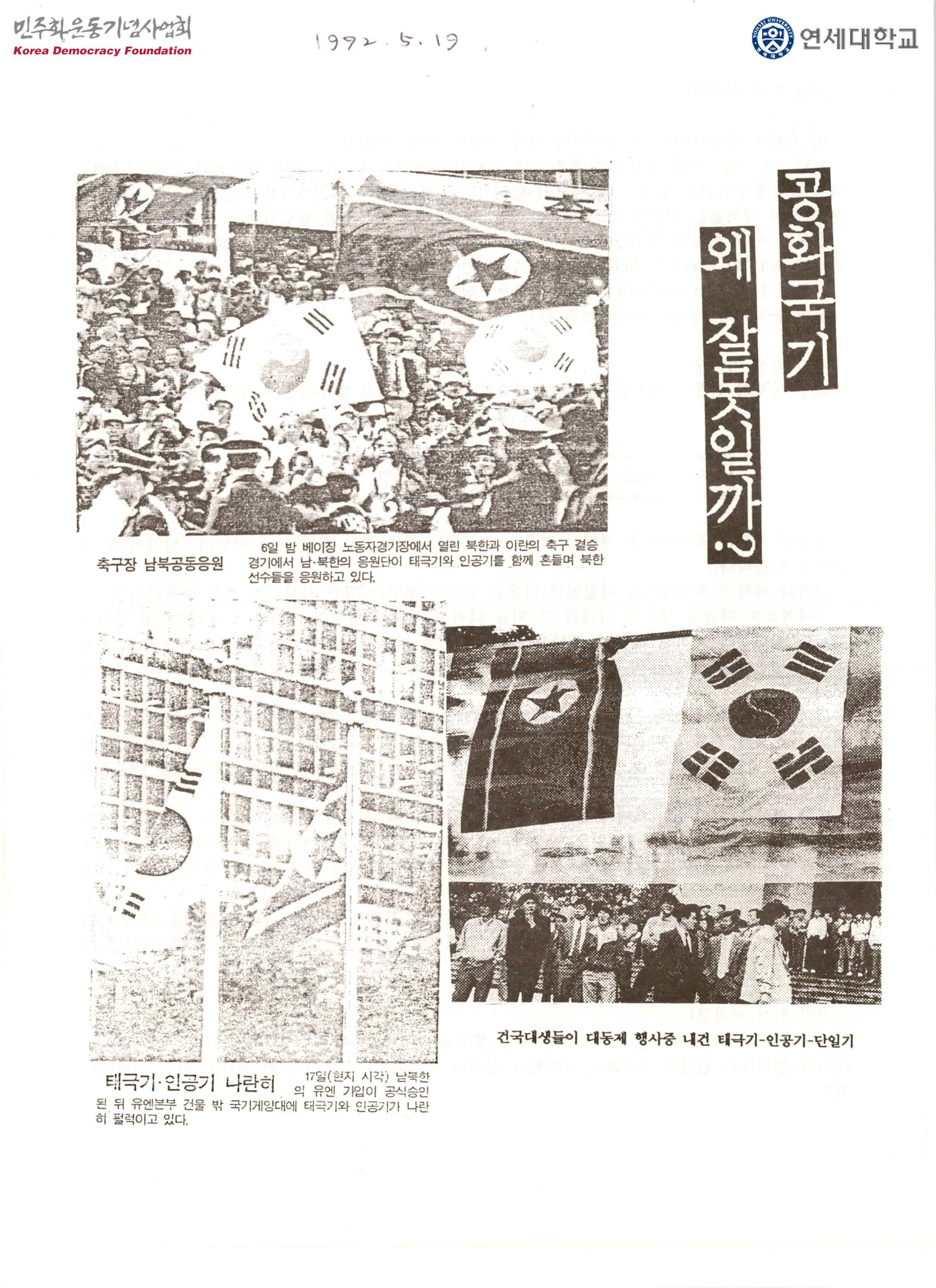 - 부산·경남지역 총학생회 연합과 전남지역 총학생회 연합에서 조국통일위원회 출범식 때 태극기, 단일기와 함께 공화국기를 게양한 것에 대하여 정부는 강경탄압으로 대응하였다는 내용, 정부는 공화국기 관련 학생에 대한 수배검거조처를 즉각 해제하고, 국가보안법을 철폐하고 통일인사를 석방하라는 요구사항 등이 수록된 유인물