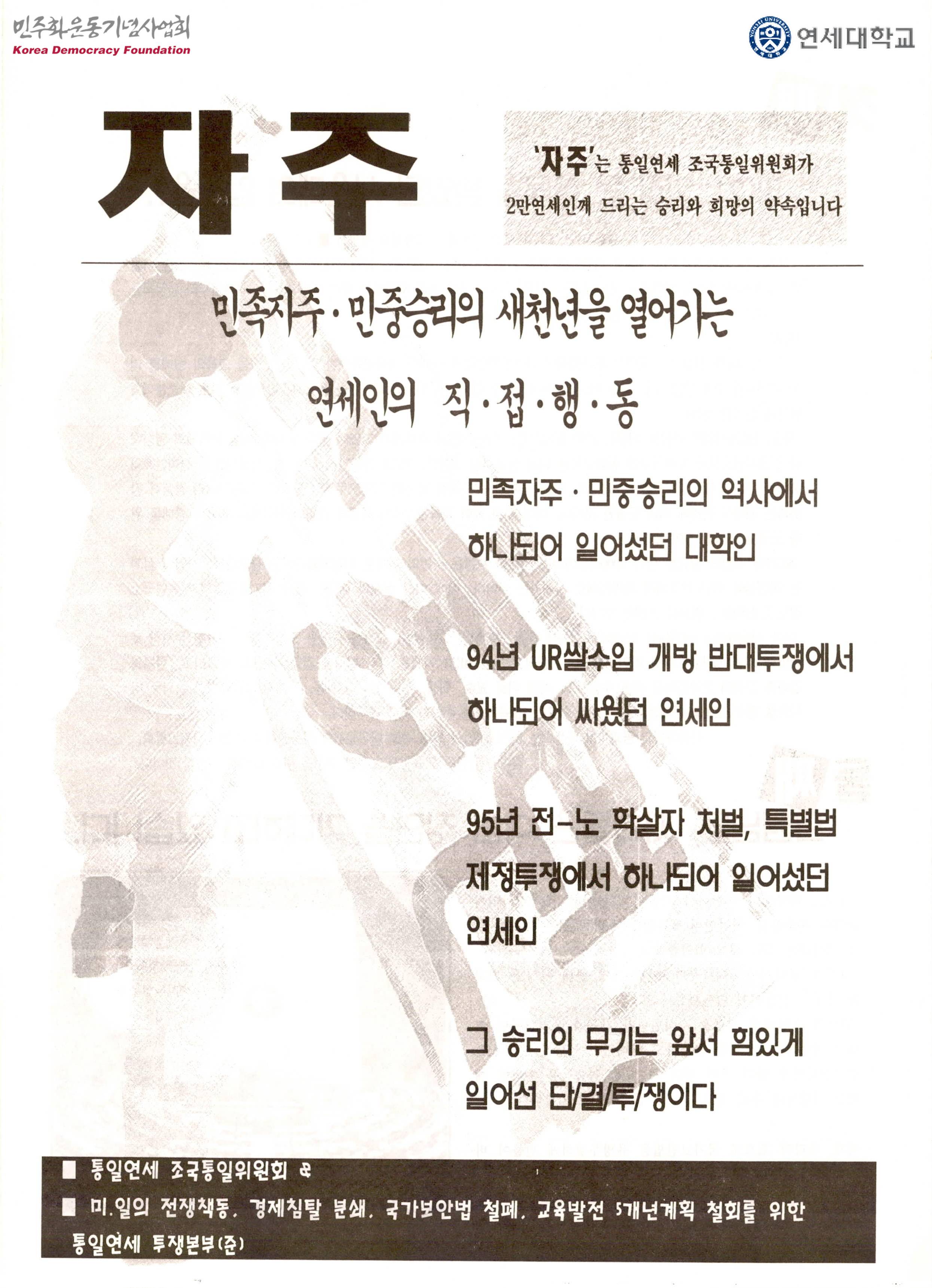 자주 : 민족자주 민중승리의 새천년을 열어가는 연세인의 직접행동