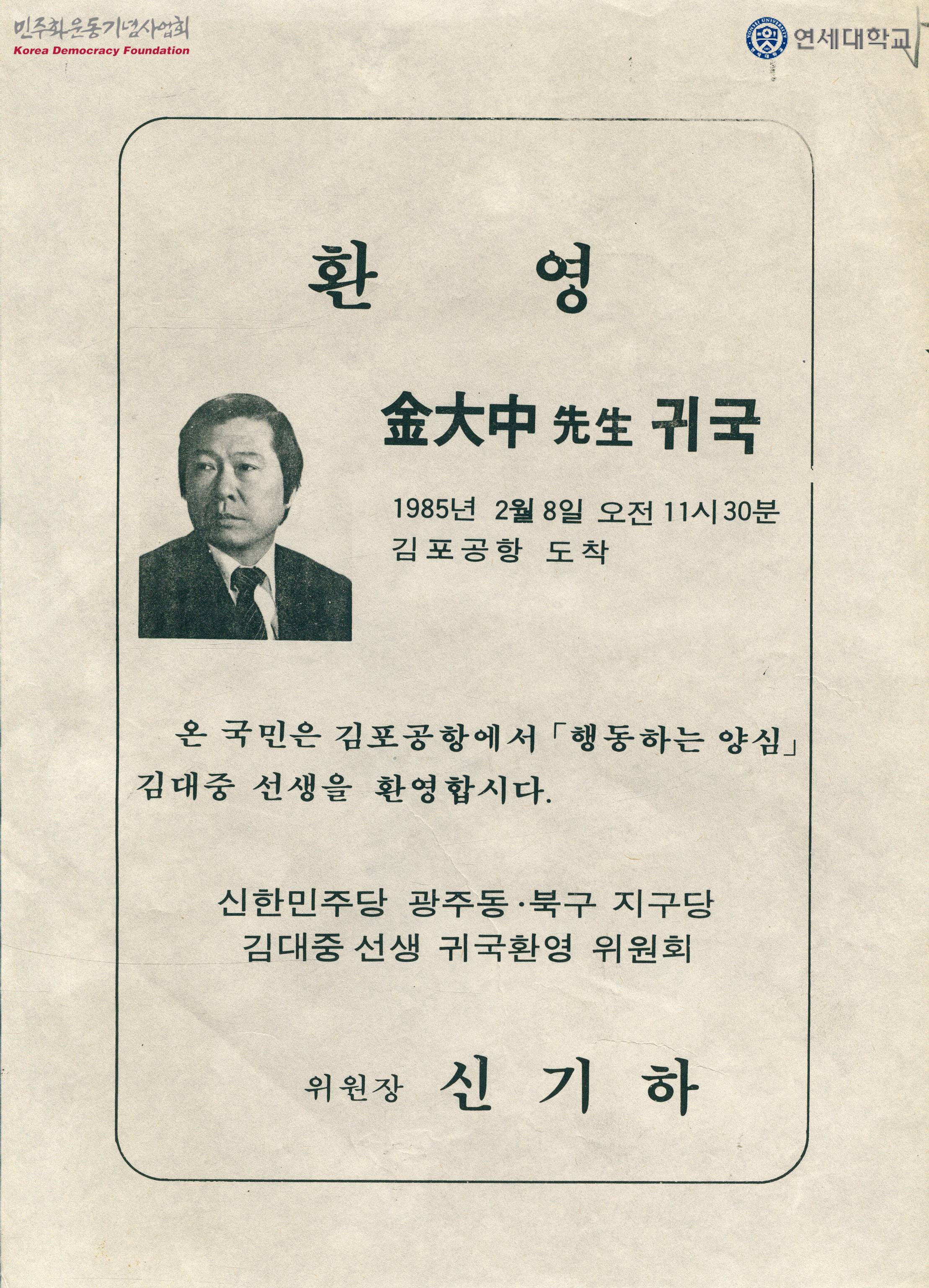 환영 김대중(金大中) 선생(先生) 귀국