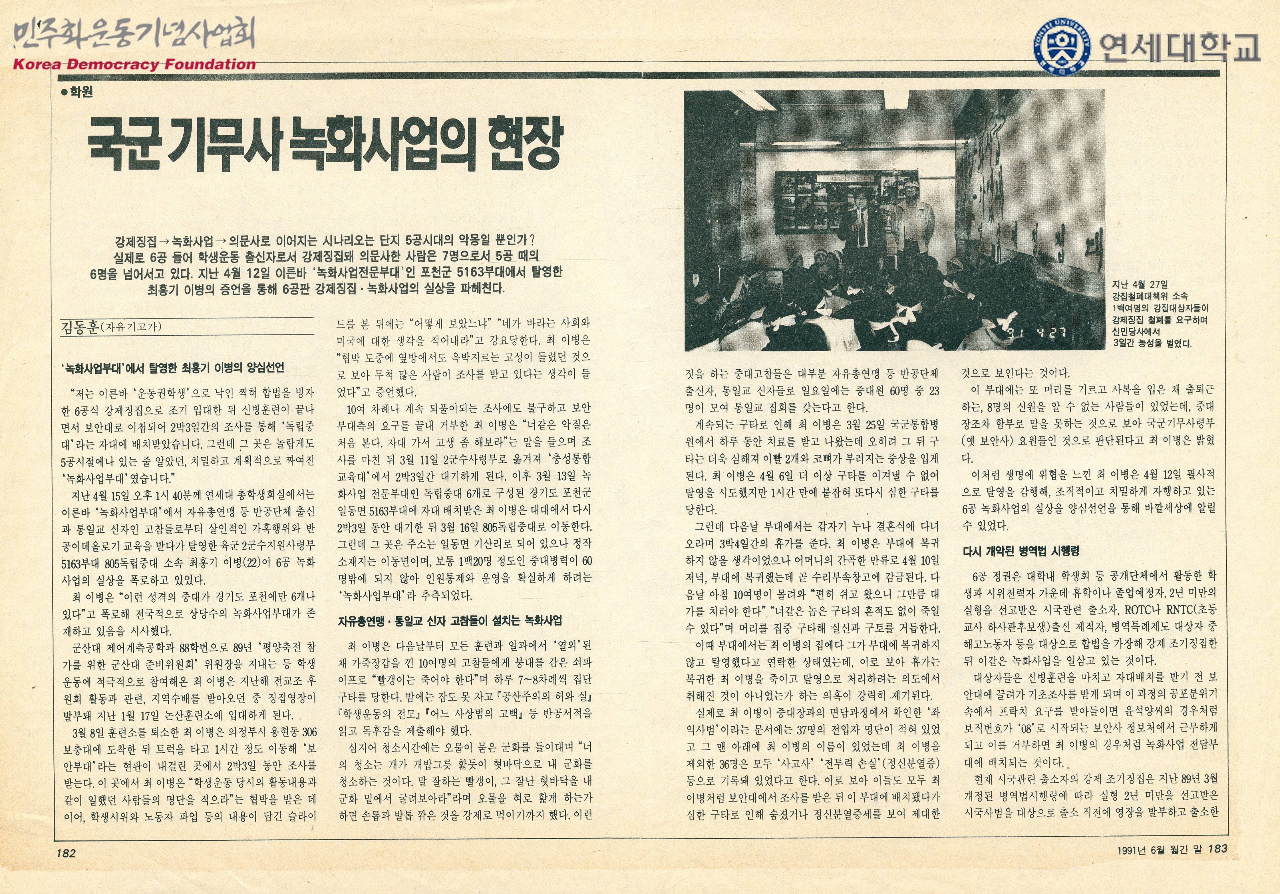 - 녹화사업전문부대인 포천군 5163부대에서 탈영한 최홍기 이병의 약력, 녹화사업의 전말, 양심선언 등의 내용이 수록된 정간물