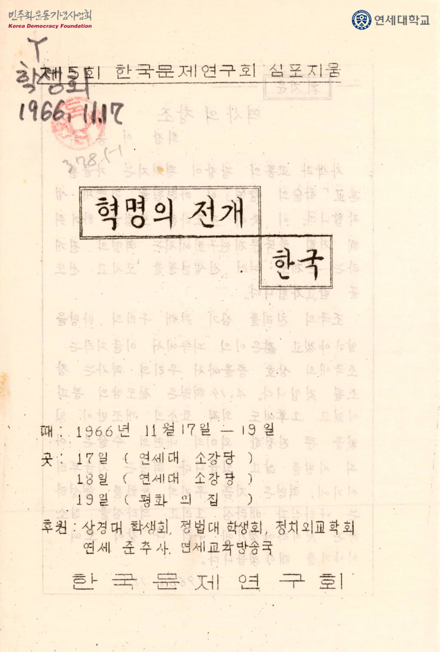 제5회 한국문제연구회 심포지움 : 혁명의 전개 한국
