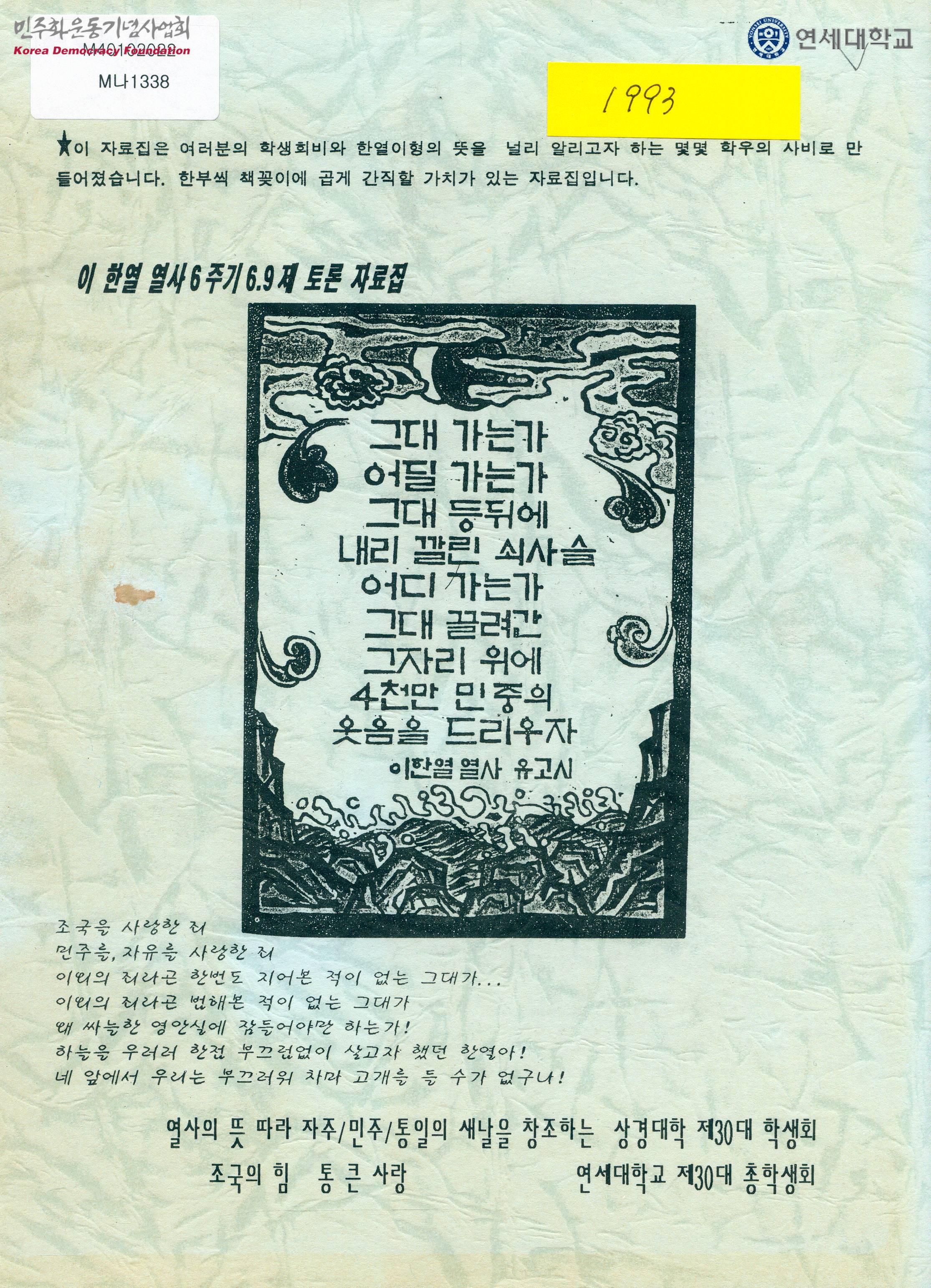 이한열 열사 6주기 6.9제 토론 자료집