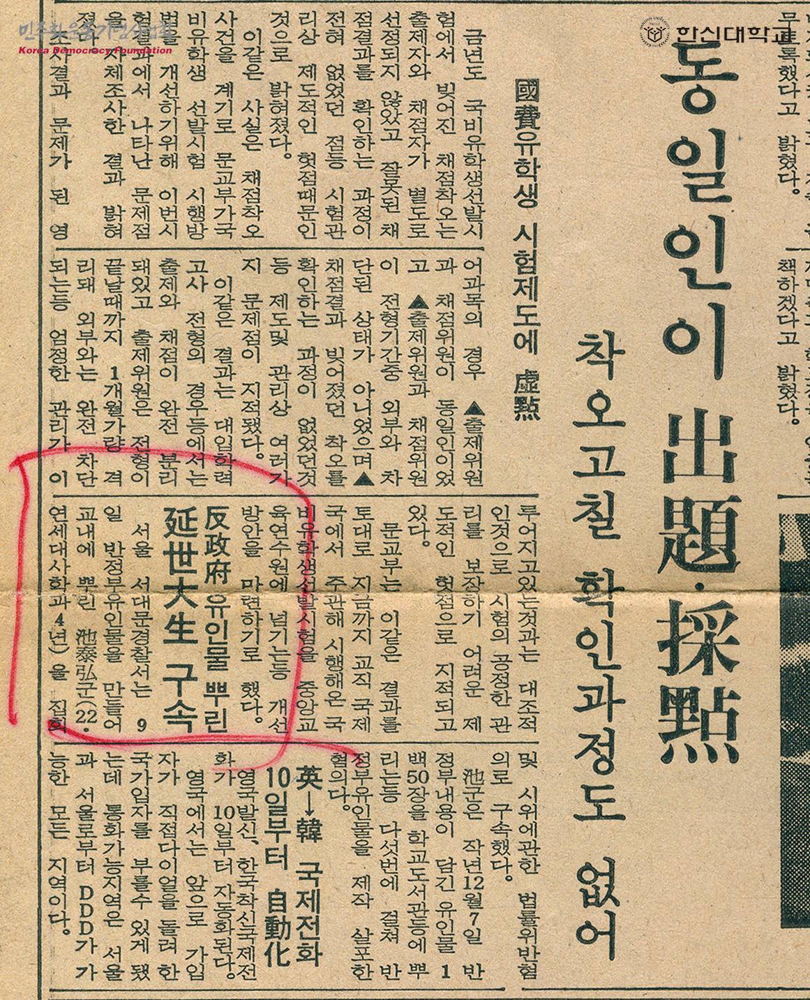 [신문스크랩]반정부 유인물 뿌린 연세대생 구속