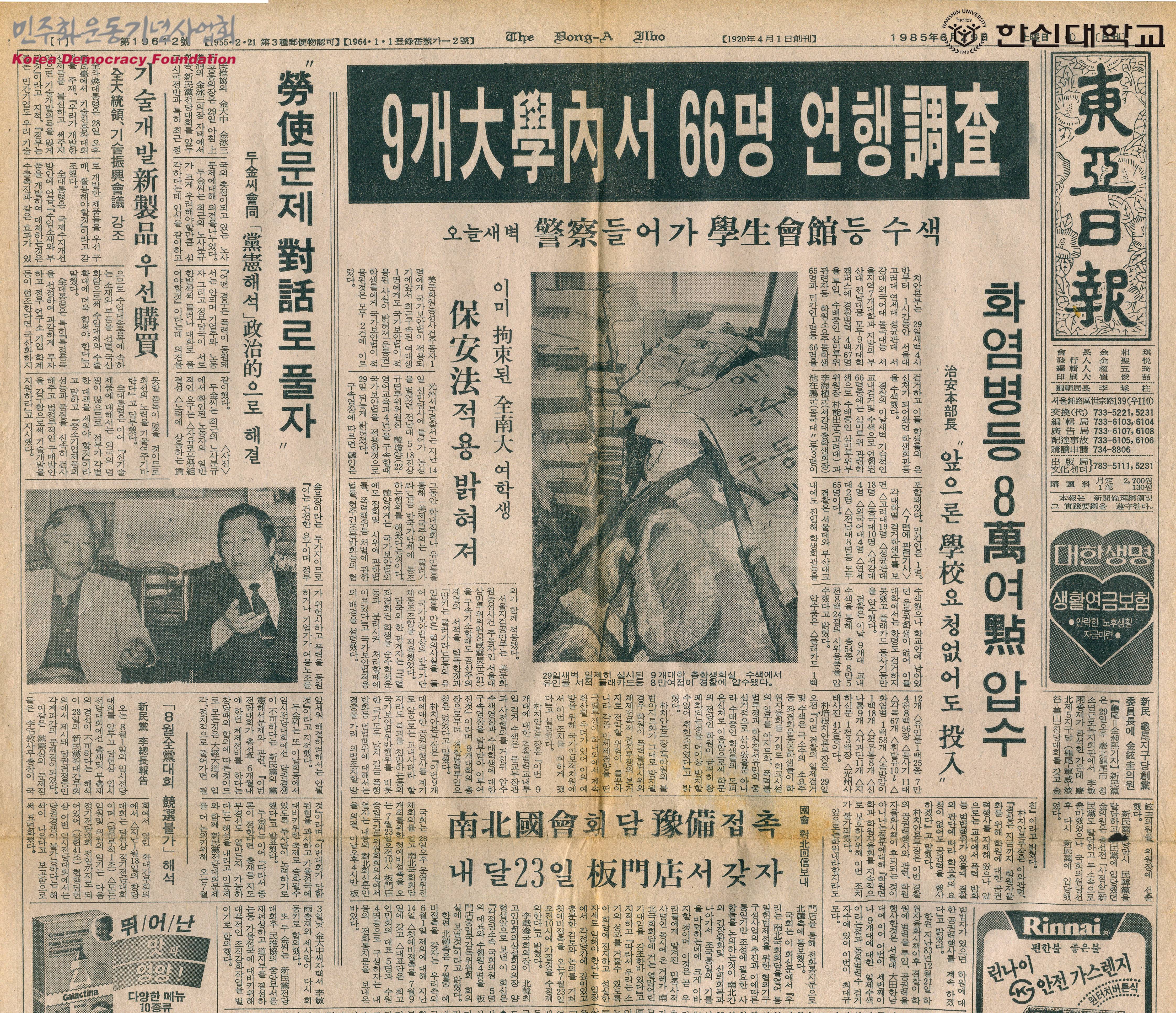 [신문스크랩]9개 대학내서 99명 연행조사