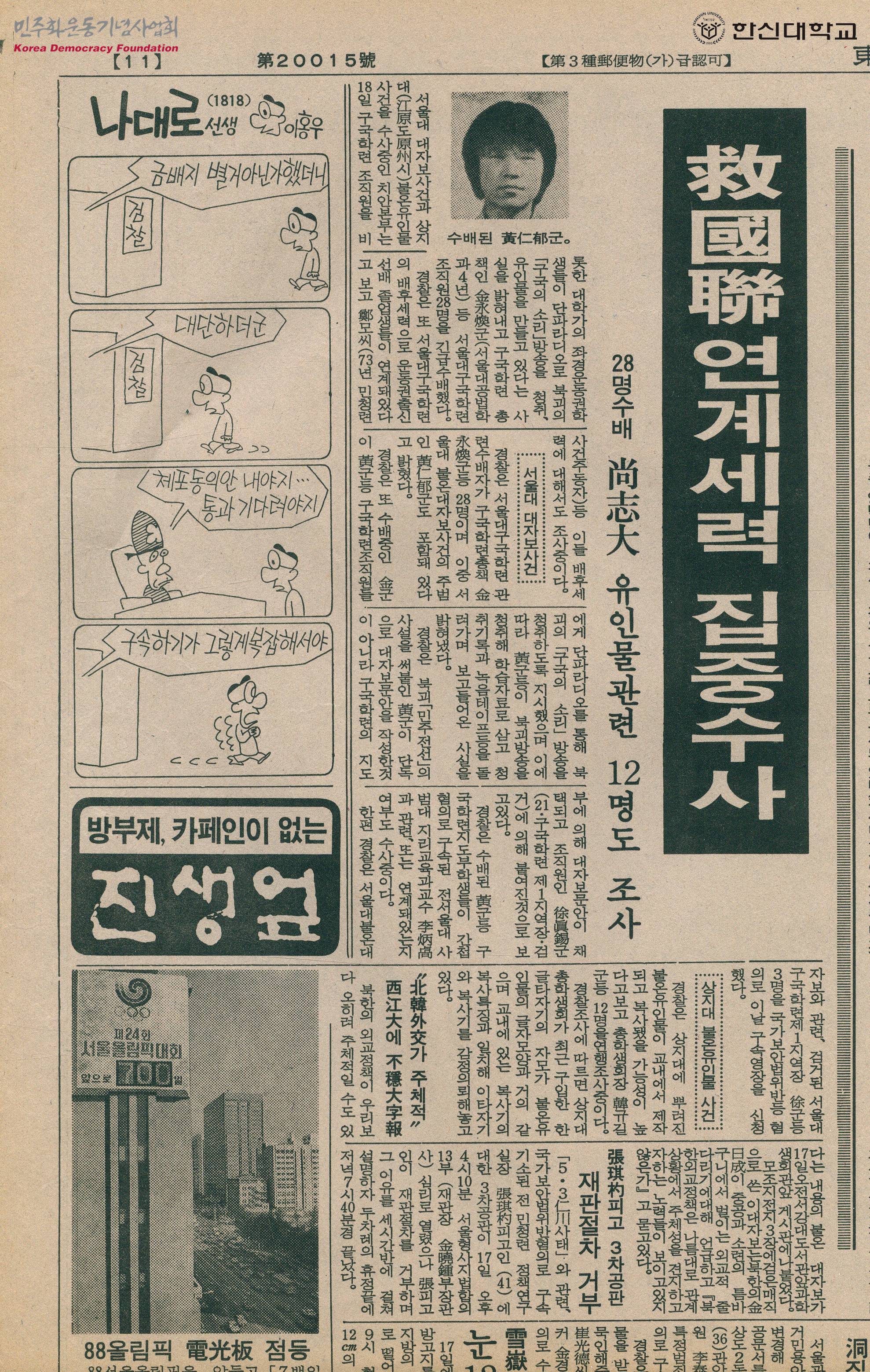- 서울대 대자보사건과 상지대 불온유인물 사건을 수사중이던 치안본부는 구국학련 조직원을 비롯한 대학가의 좌파학생들이 구국의 소리 방송을 청취하고 있다는 사실을 밝혀 김영환 등 서울대 구국학련 조직원 28명을 긴급수배했다는 내용의 기사가 수록된 신문스크랩