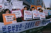 - 1983년 3월 22일 경찰고문으로 숨진 김근조의 미망인 박혜경이 박종철 고문치사사건의 전말을 듣고 사건이 발생한지 4년만에 당시의 상황, 경찰과 회사의 태도 등에 대해 언급했다는 내용의 기사가 수록된 신문스크랩