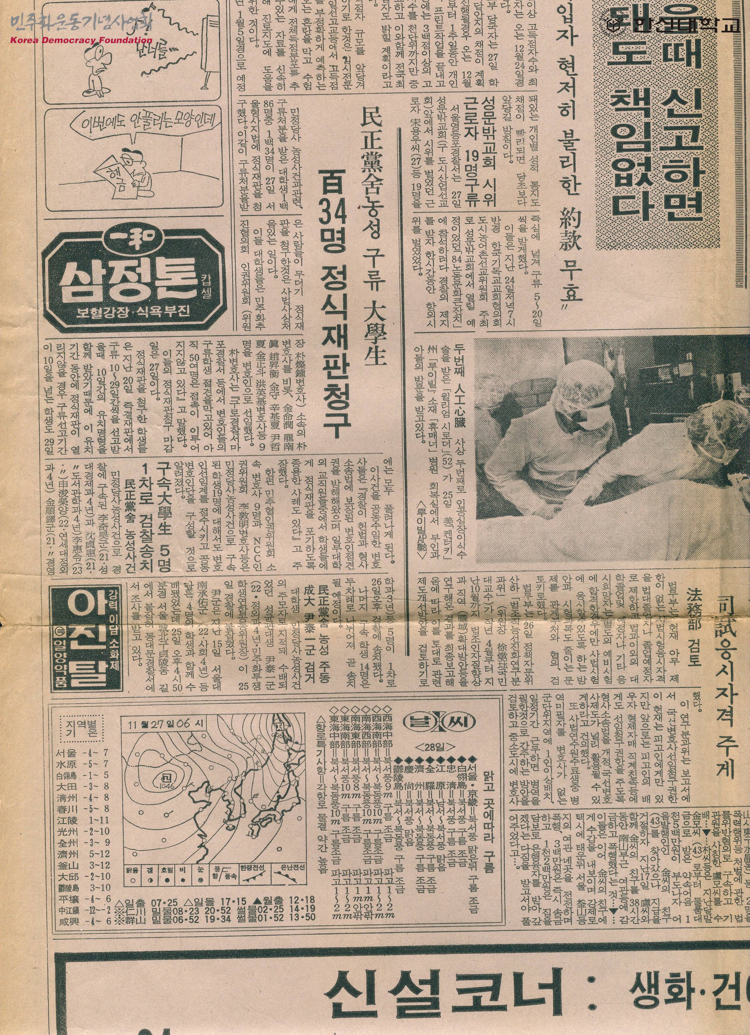 [신문스크랩]민정당사농성 구류 대학생 134명 정식재판청구