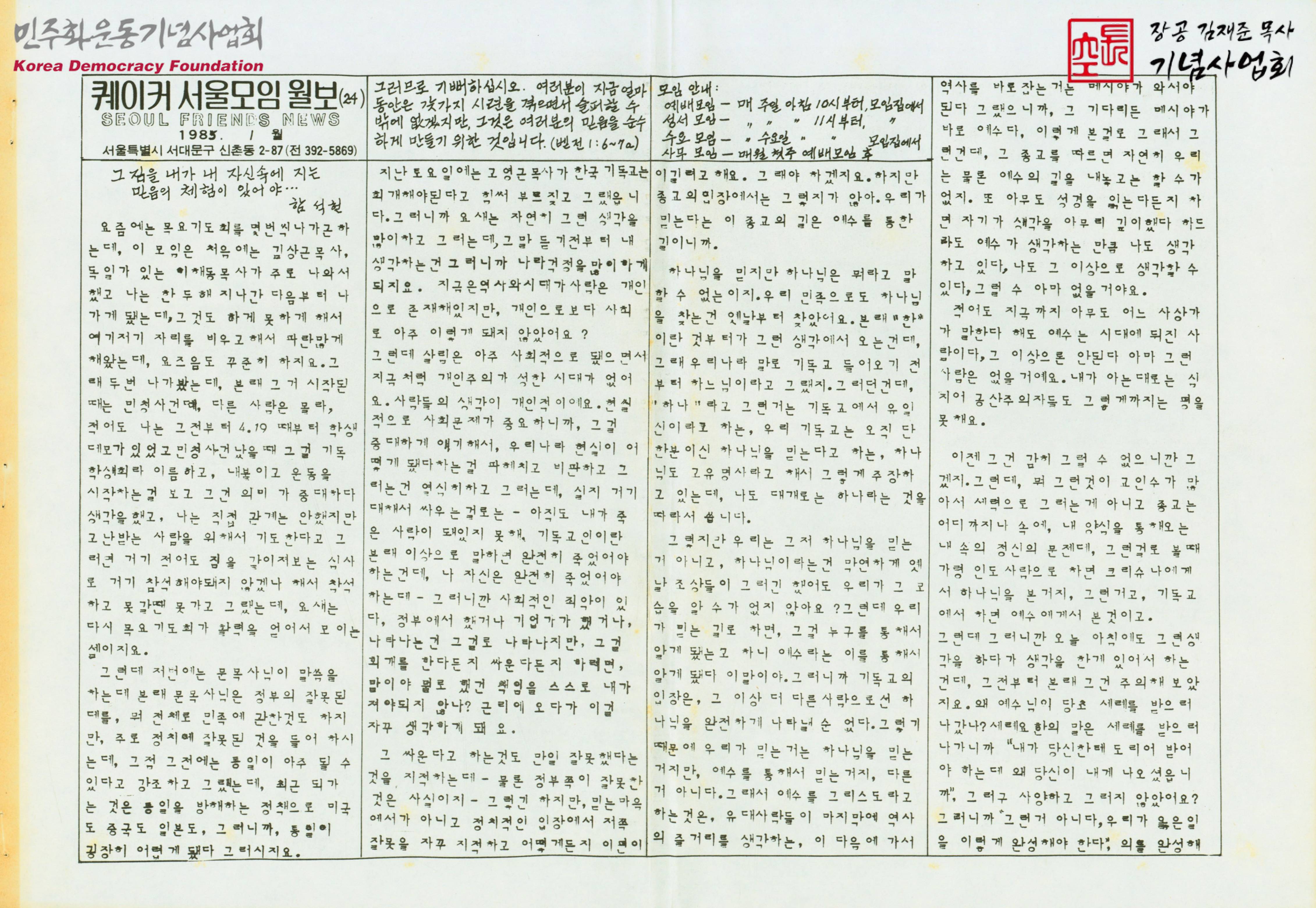 - 우리나라 현 상황의 심각성은 군국주의와 자본주의, 제국주의가 제대로 청산되지 않은 상황에서 그 영향을 받은 못된 사람이 나서서 나라를 놓고 싸움질을 했기 때문이라는 글, 세상을 위해 무엇을 스스로 할 때 마음이 뜨거워졌다는 글, 공동체에 관련된 글 등이 수록된 월보