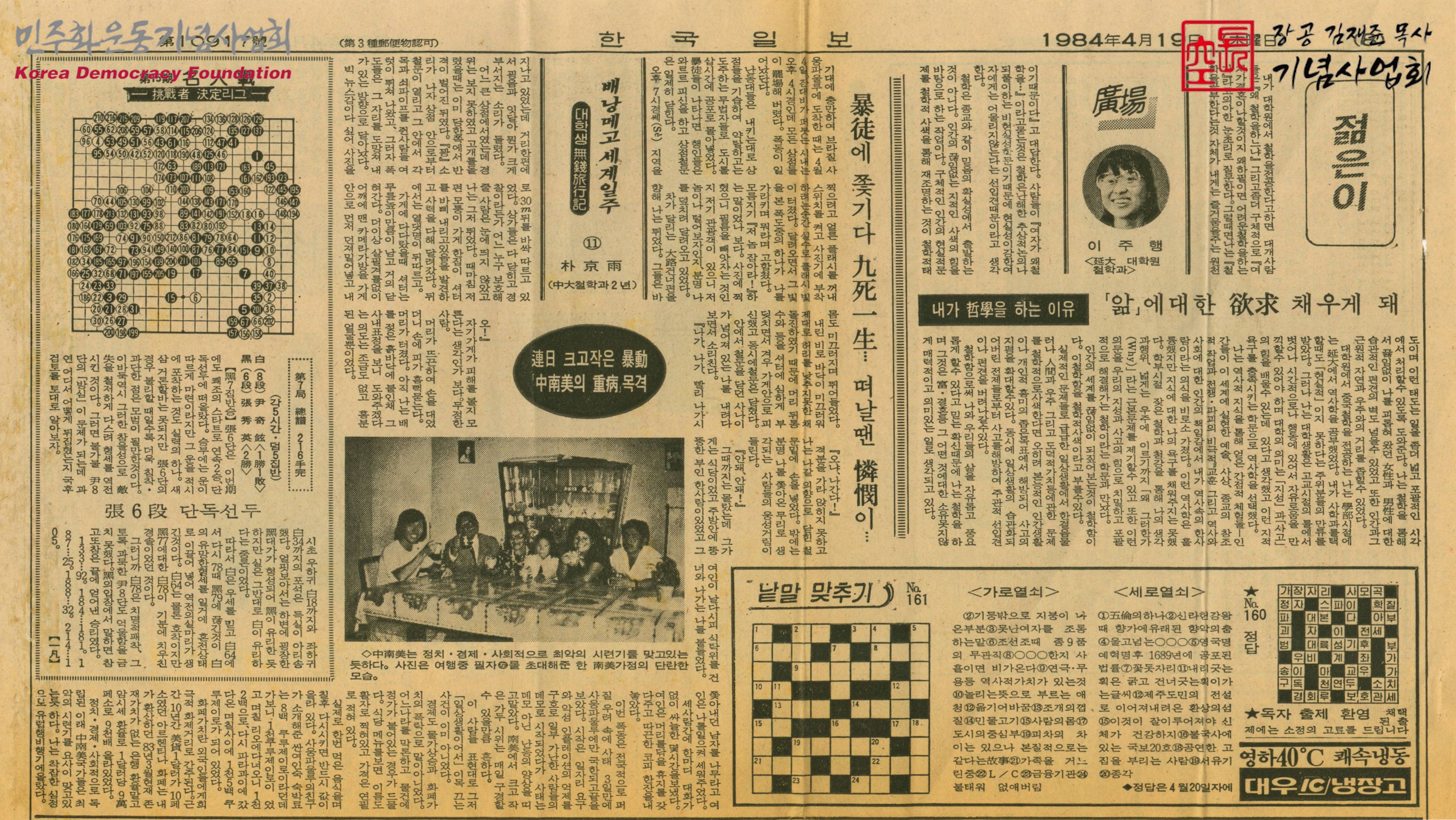 - 철학을 공부함으로 앎에 대한 욕구를 채우게 된다는 건국대학교 대학원 철학과 이주행의 글, 정치, 경제, 사회적으로 최악의 시련기를 맞고있는 중남미로 떠난 중앙대학교 철학과 박경우의 여행기 등이 수록된 신문스크랩