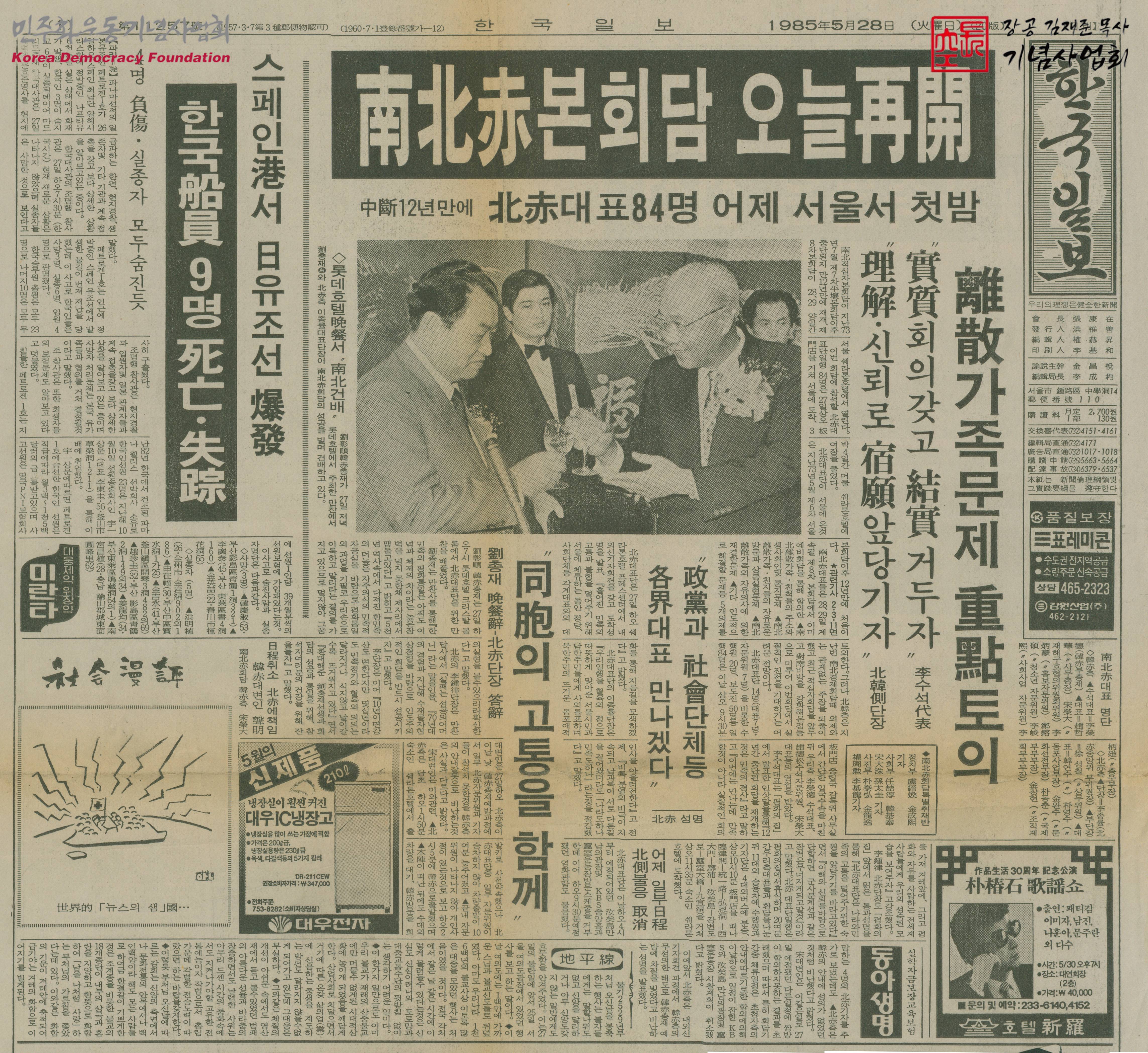 [신문스크랩]南北赤본회담 오늘 再開