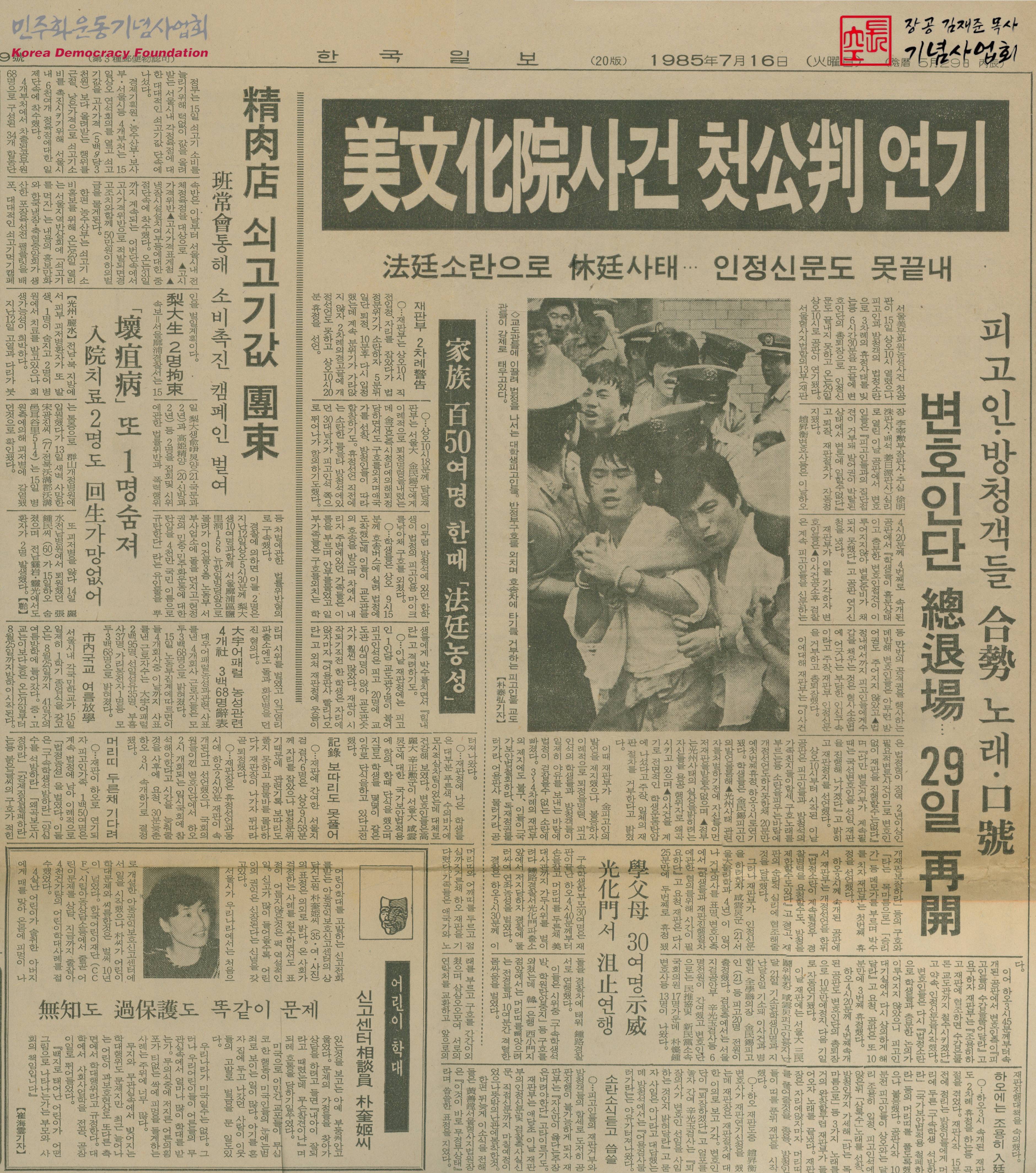 美文化院사건 첫公判 연기