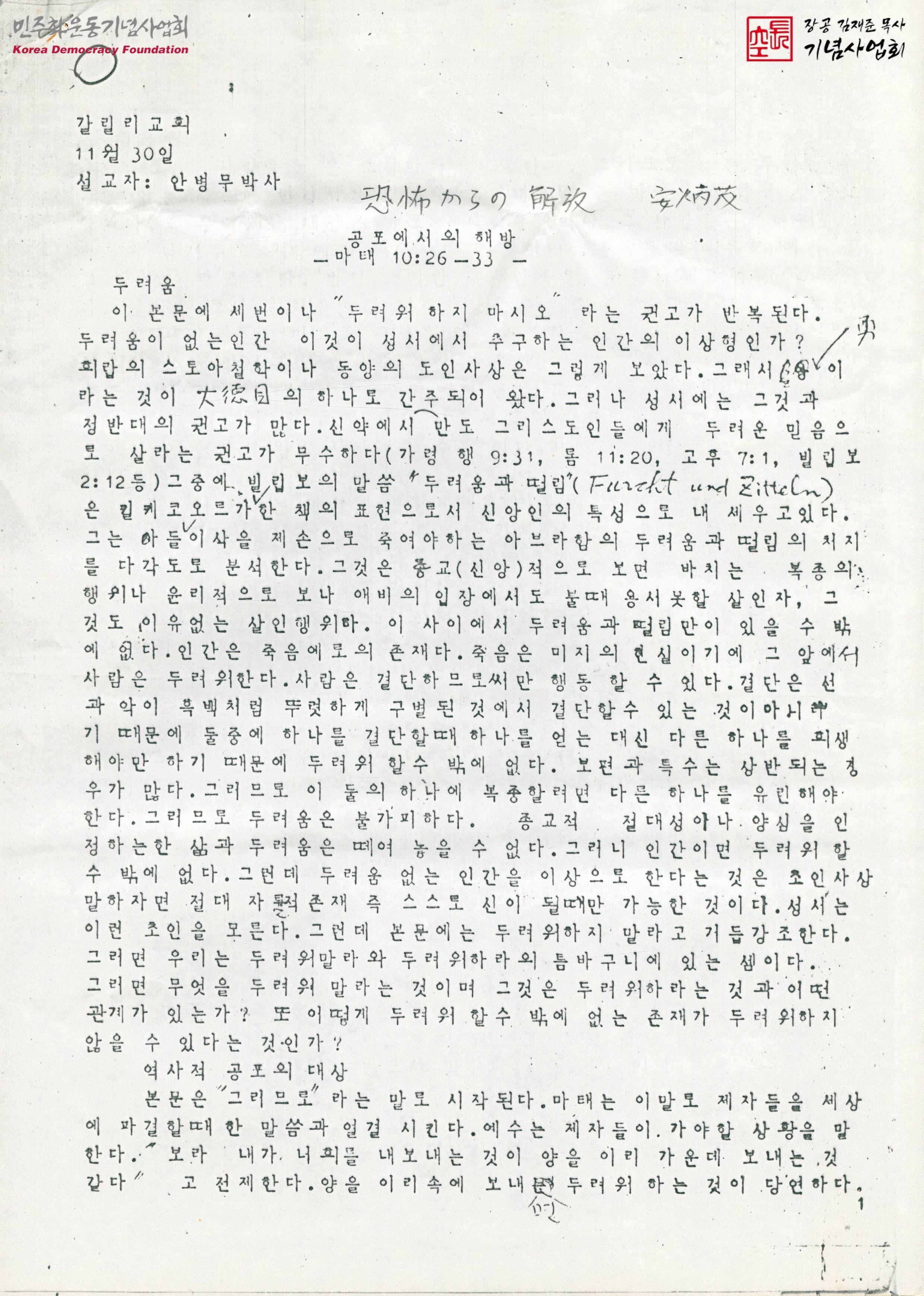 - 성서에서 추구하는 인간의 이상형, 그리스도인의 정황 등의 내용이 수록된 문서로 주요 내용은 다음과 같음 - 두려움 - 공포에서의 해방 - 용감하라