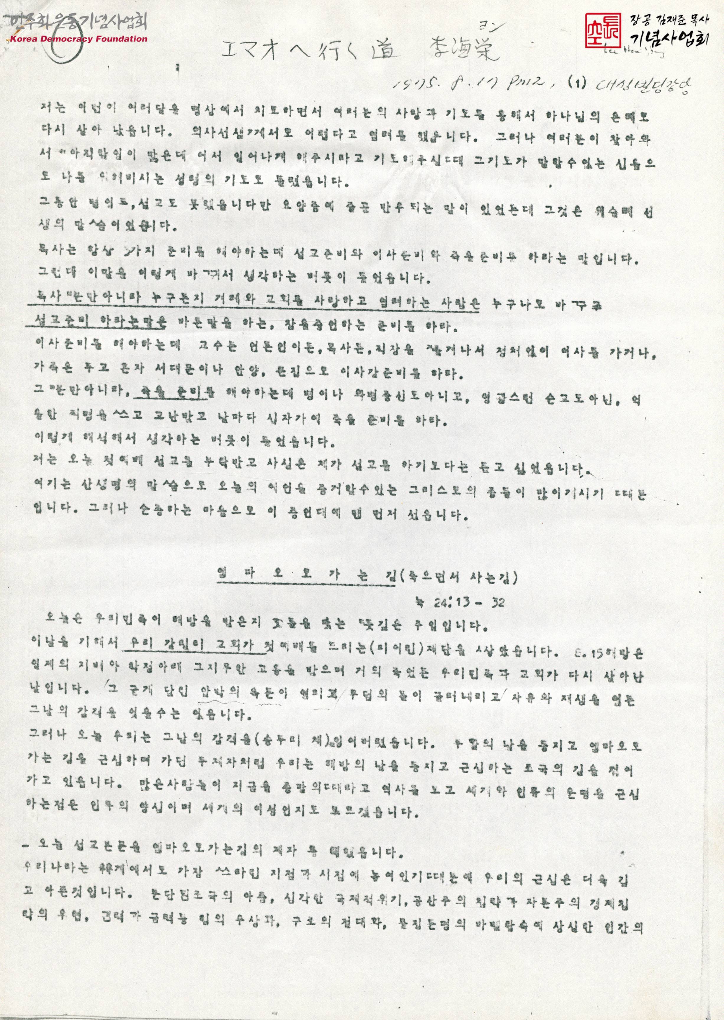 エマオへ行く道(엠마오로 가는 길)