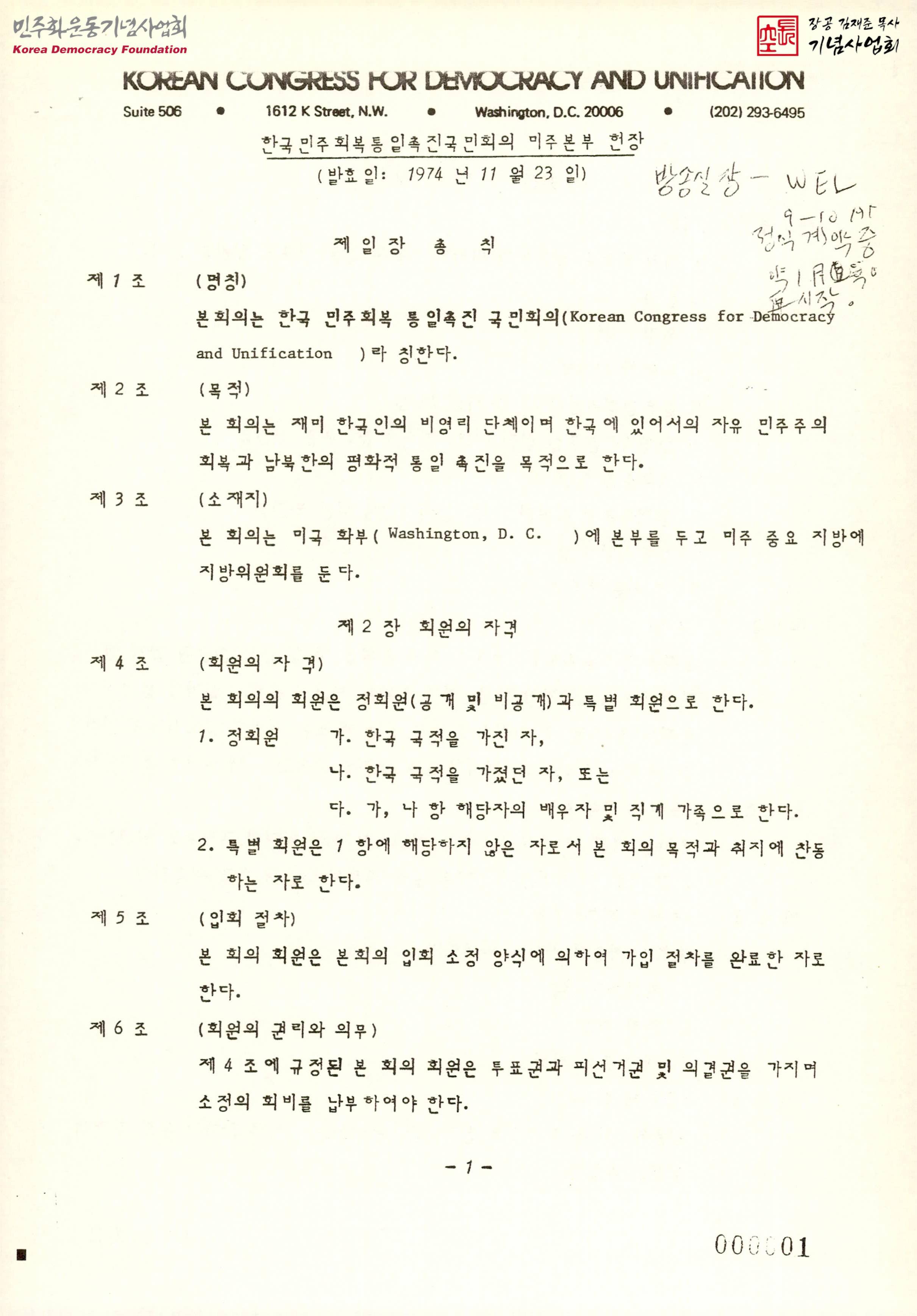 한국민주회복통일촉진국민회의 미주본부 헌장