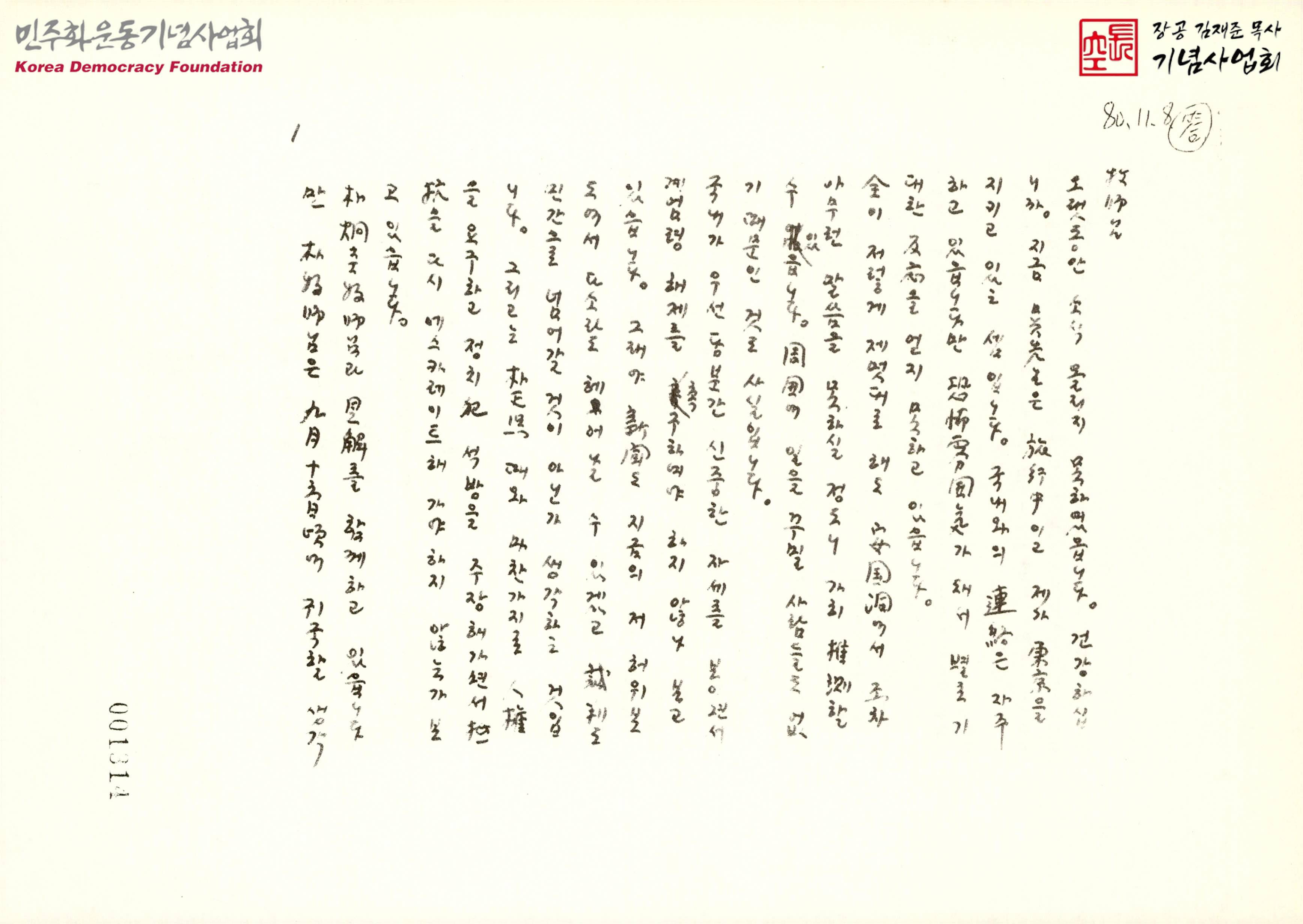 [지명관이 김재준에게 보내는 계엄령 해제 관련 편지]