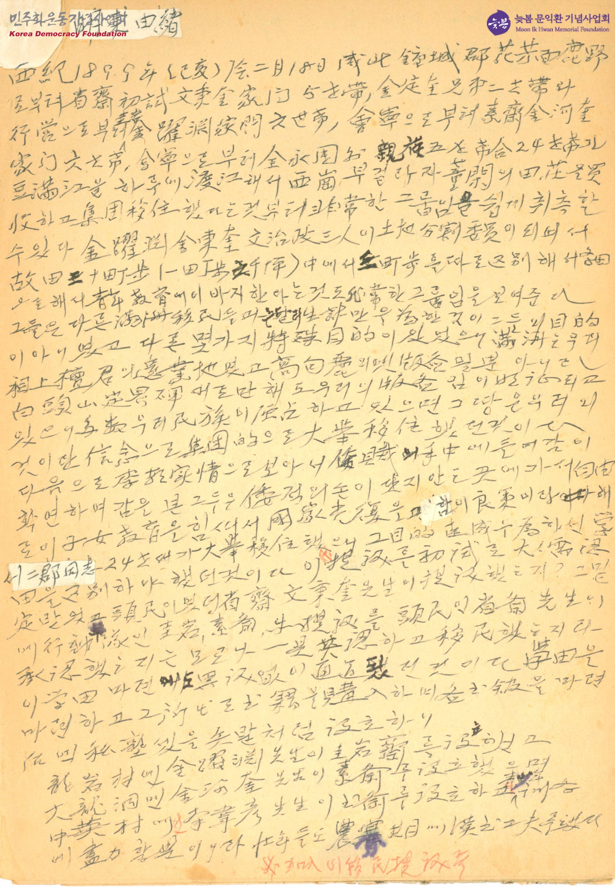 - 문재린이 일제강점기 당시 만주에서의 소회, 조선의 역사 등에 대해 적은 것으로 추정되는 글 모음