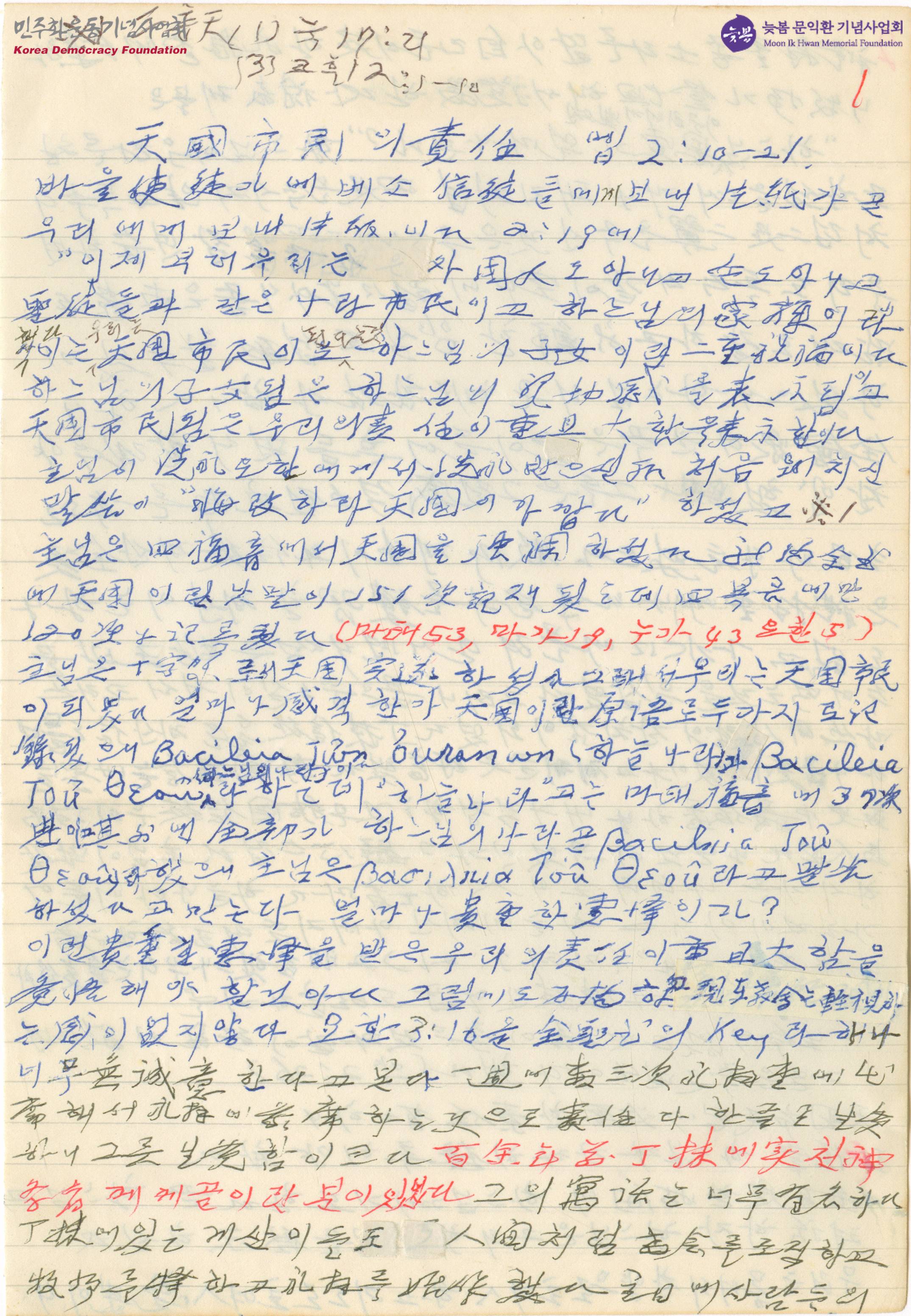 - 문동환이 설교를 준비하는 과정에서 준비한 것으로 추정되는 글로, 기독교 신자로서 복음의 책임 있는 합당한 생활을 하라는 내용을 담은 글