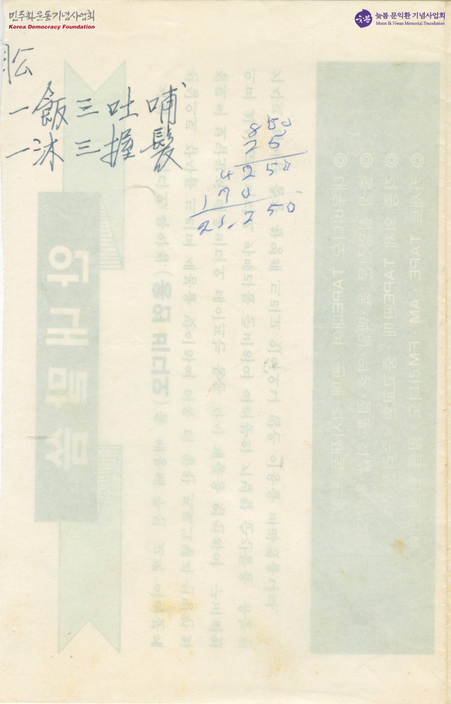 - 문동환이 목회 활동 과정에서 소요되는 경비에 관해 적은 것으로 추정되는 메모