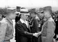 - 김대중 총재, 이희호 여사와 함께 앉아있는 김신묵 권사의 모습이 담겨있는 사진