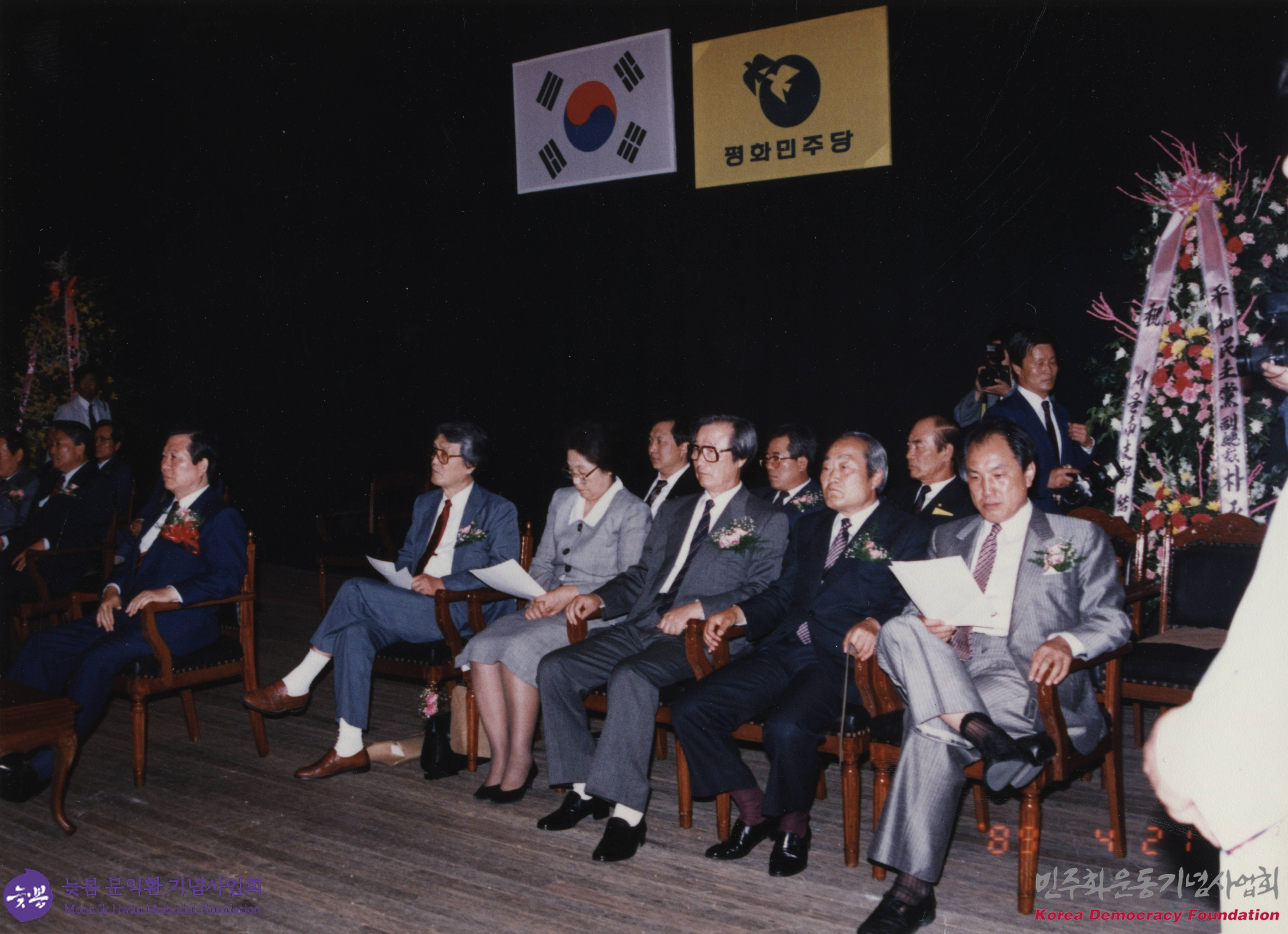 - 문동환 목사가 평화민주당의 주요인사인 김대중 총재, 이희호 여사와 같이 앉아있는 모습이 담겨있는 사진