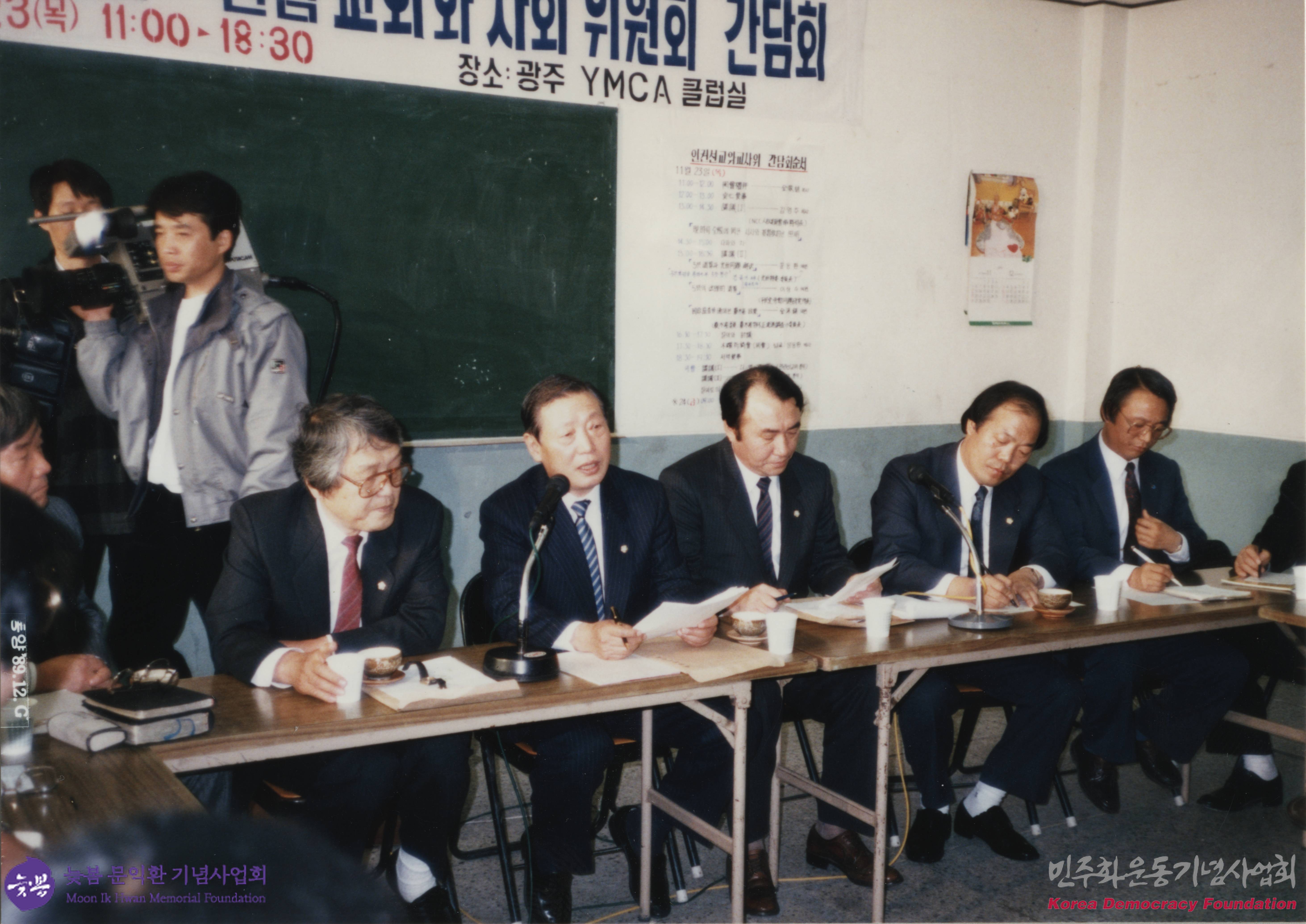 - 광주 YMCA에서 진행된 간담회에 참석한 문동환 목사의 모습이 담겨있는 사진