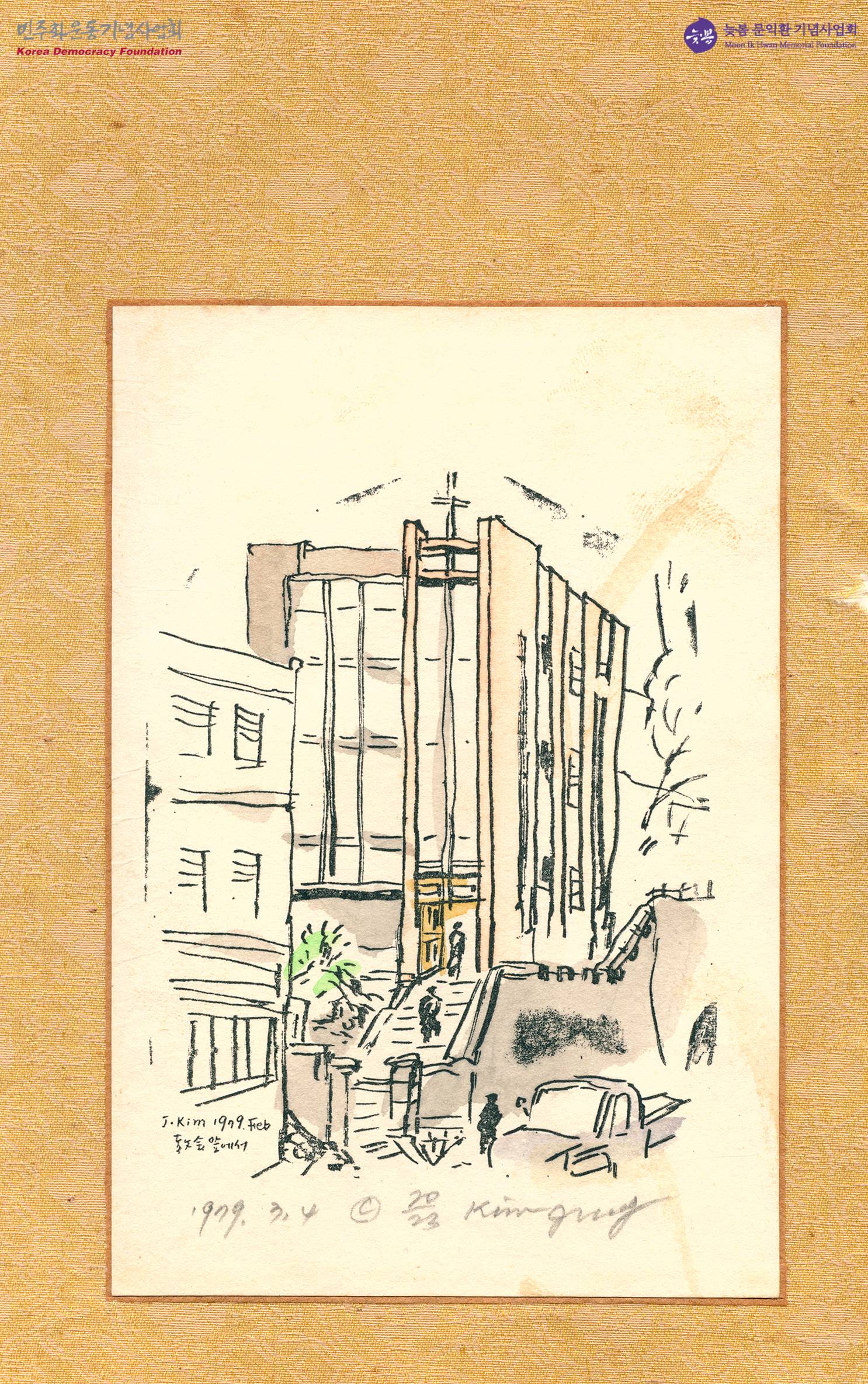 - 1979년 교회 앞의 전경이 그려진 엽서