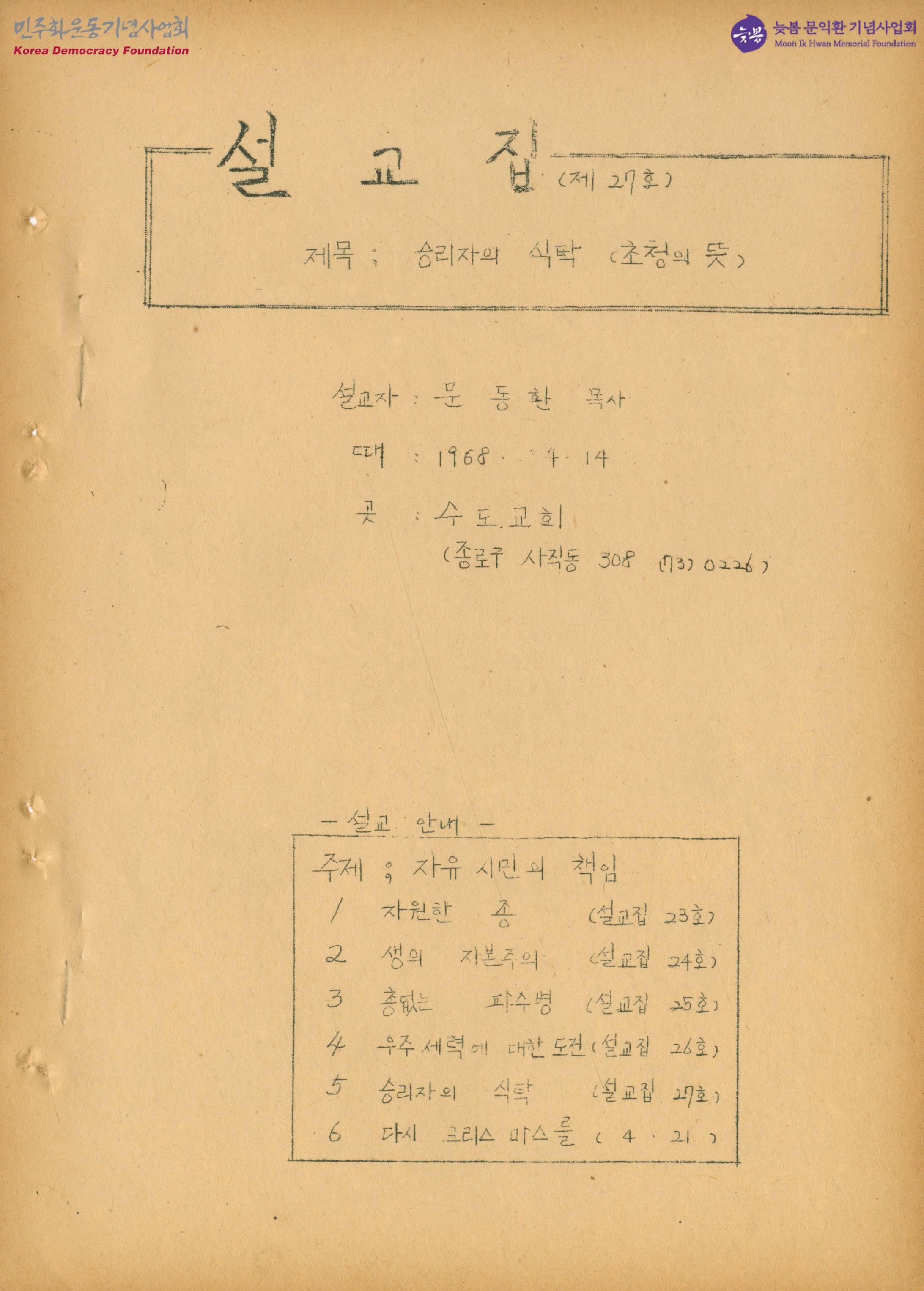 설교집 제27호 승리자의 식탁 (초청의 뜻)