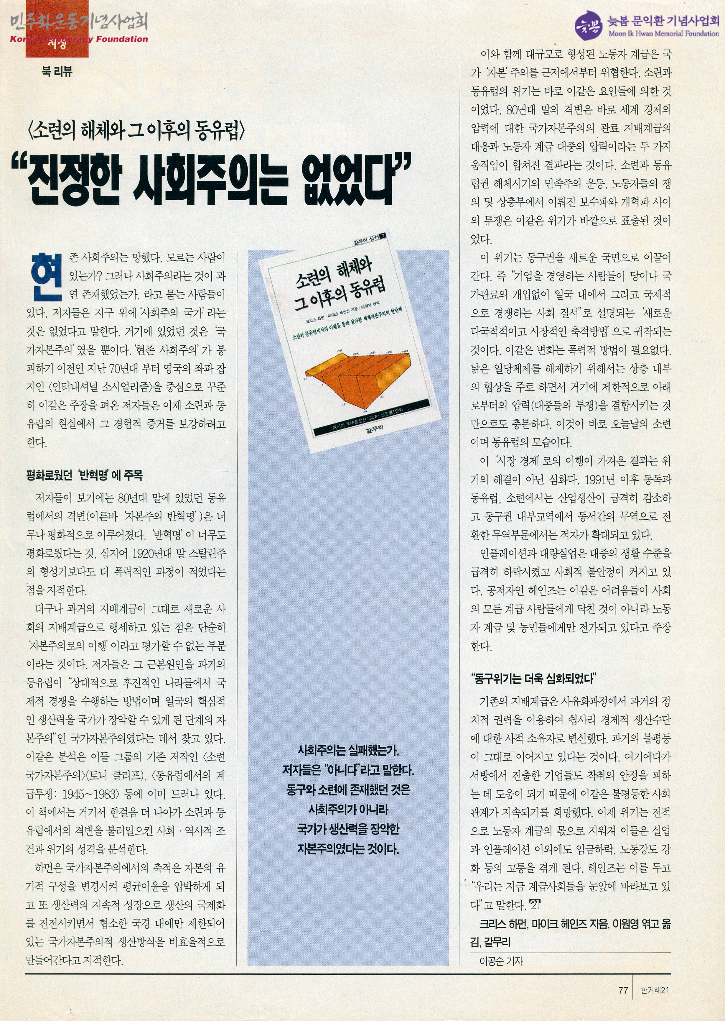 - 현존 사회주의'가 붕괴하기 이전인 70년대부터 영국의 좌파 잡지인 인터내셔널 소시얼리즘을 중심으로 사회주의가 존재하지 않았다고 보는 저자들의 주장 내용을 분석하는 내용이 수록된 문서
