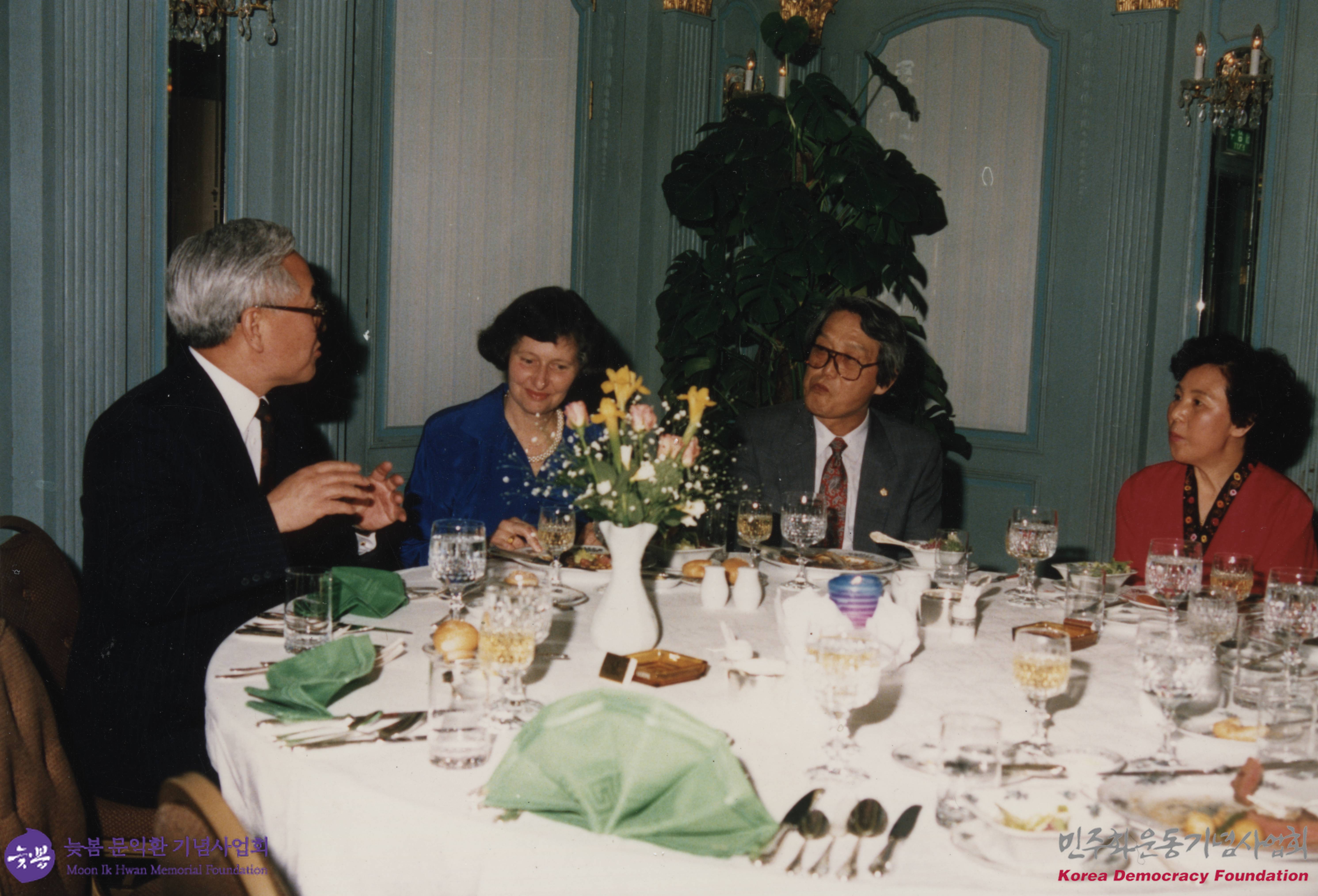 - 문동환 부부가 지인들과 함께 식사하는 모습이 촬영된 사진