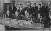 - 문동환이 김영삼, 오자복, 김대중, 김종필 등과 함께 국방관계 안보 브리핑 행사에 참석한 모습이 촬영된 사진