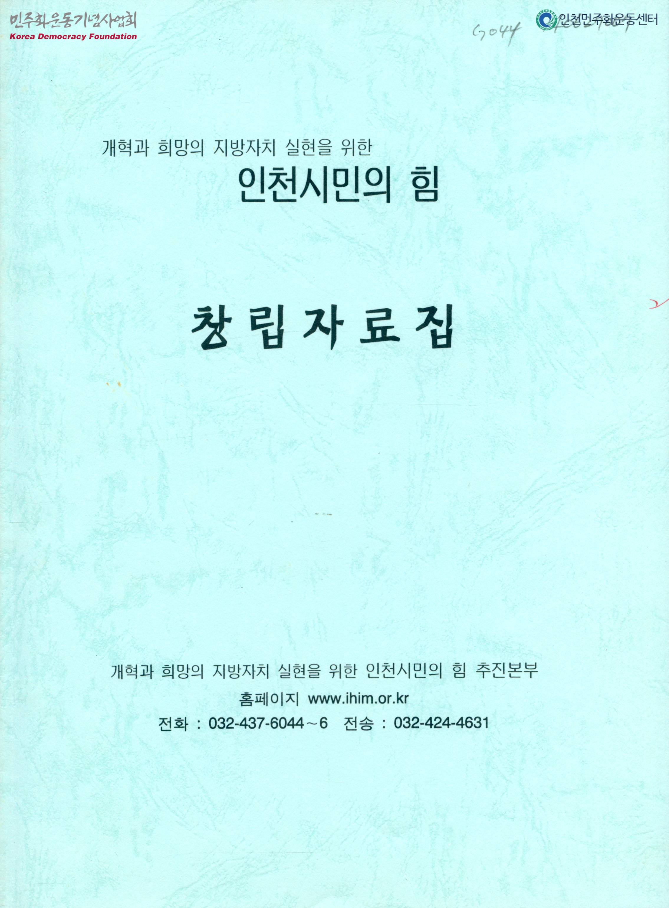 개혁과 희망의 지방자치 실현을 위한 인천"시민의 힘" 창립자료집