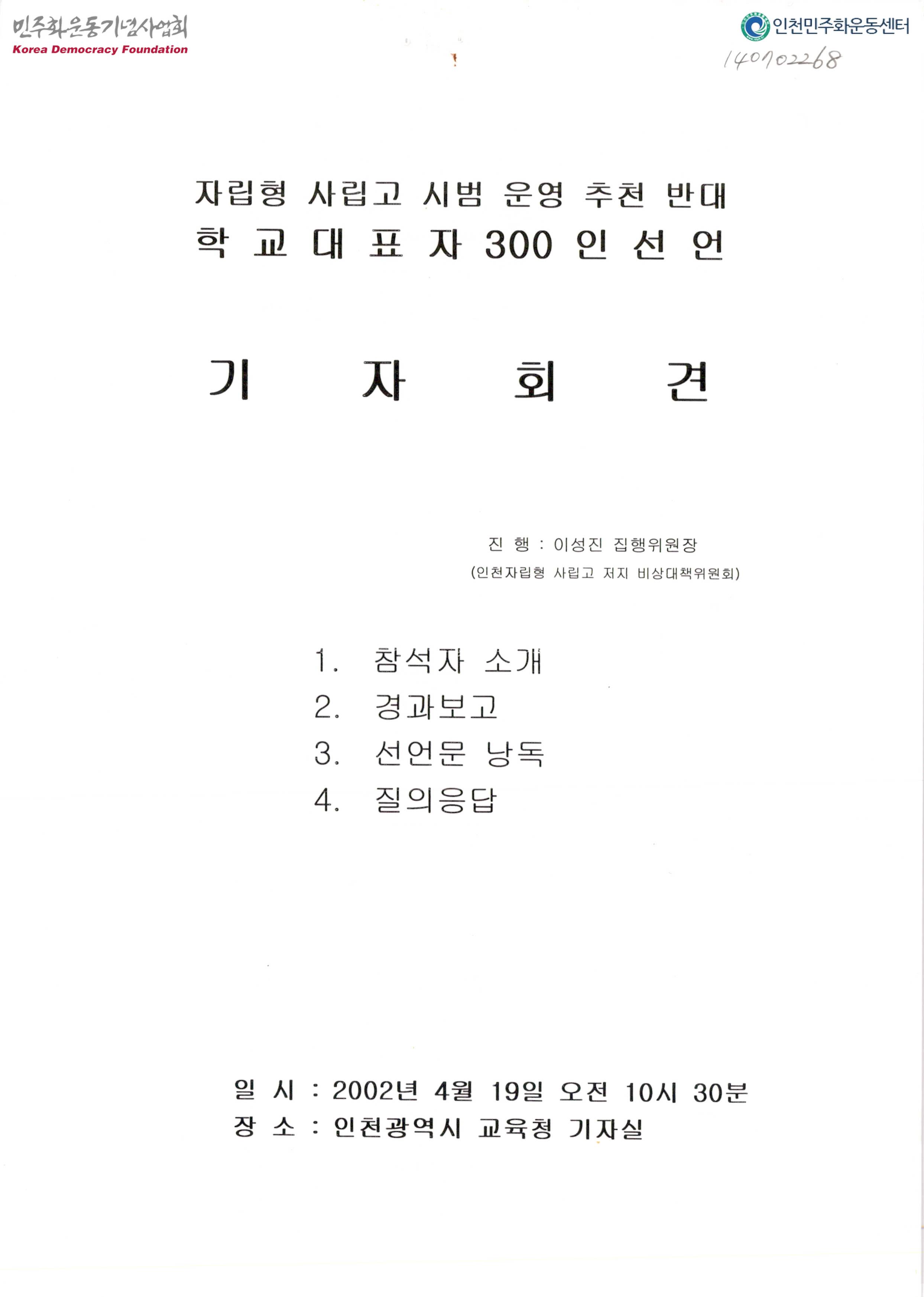자립형 사립고 시범 운영 추천 반대 학교대표자 300인선언 기자회견