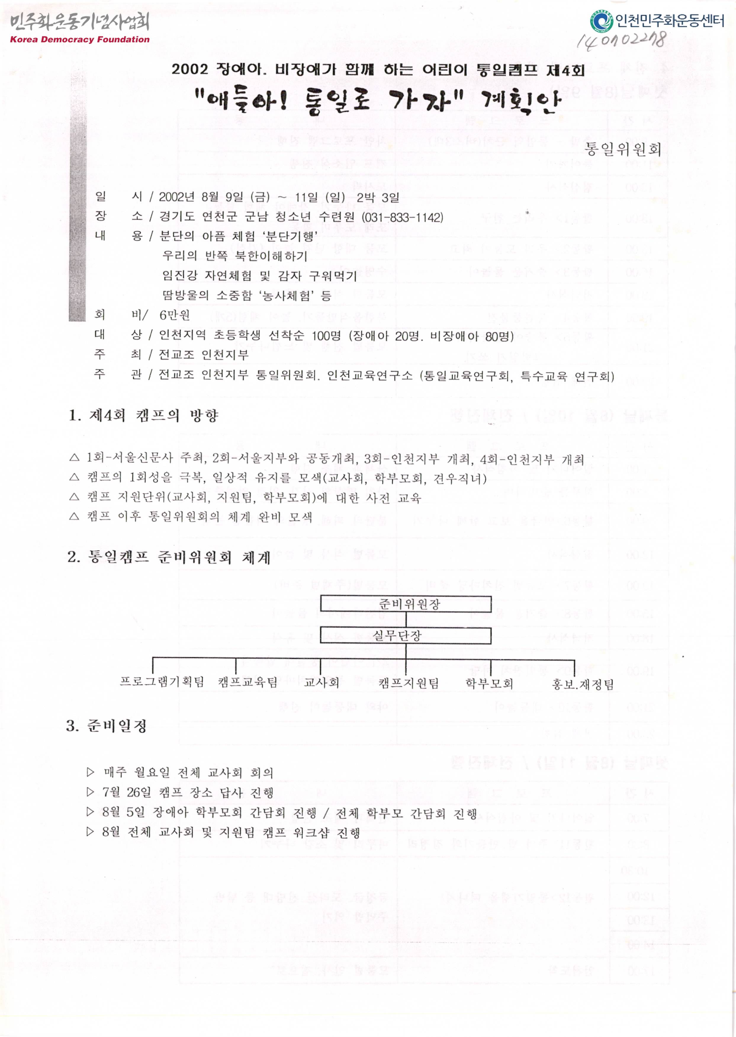 2002 장애아, 비장애가 함께하는 어린이 통일캠프 제4회 "애들아! 통일로 가자" 계획안