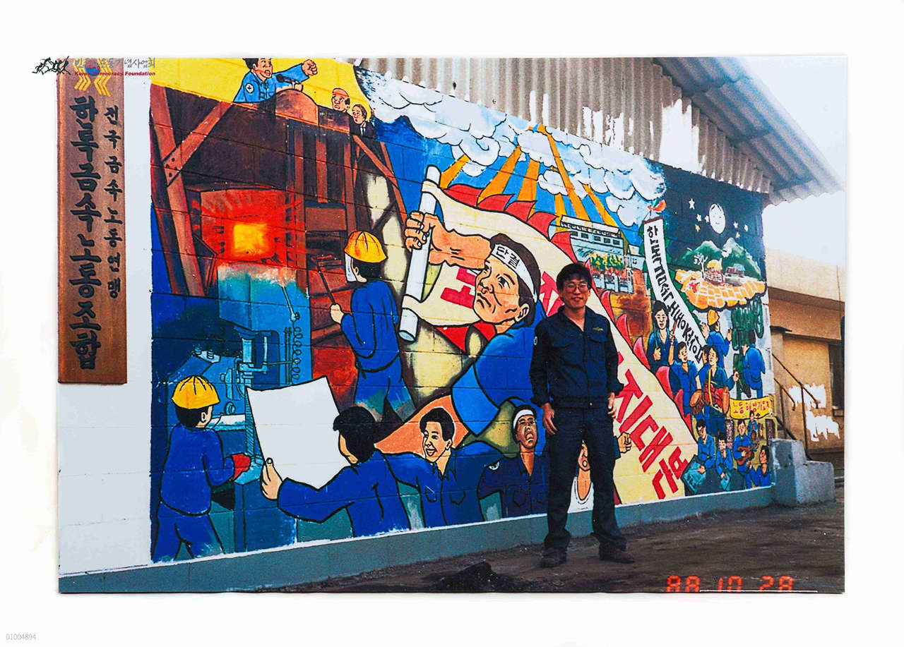 - 한국금속노동조합 벽화를 찍은 사진으로 노동자들과 함께 작업한 것임