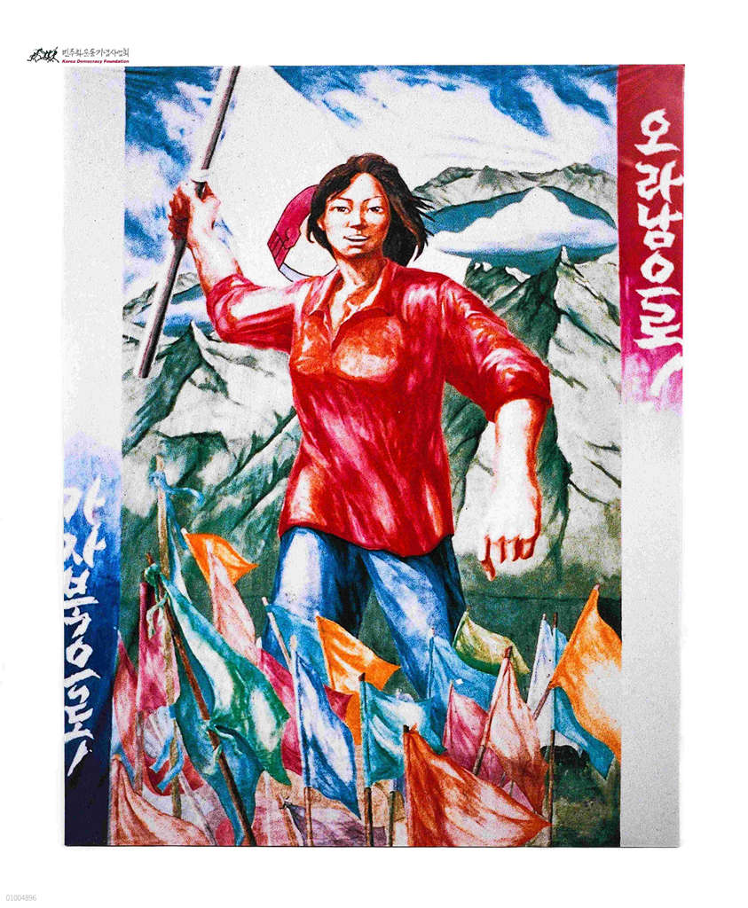 통일을 염원하는 여성노동자 걸개