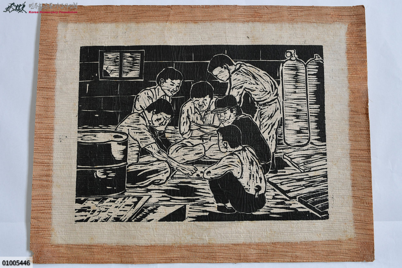 미상[드럼통옆에 사람들이 모여서 앉아 있음]