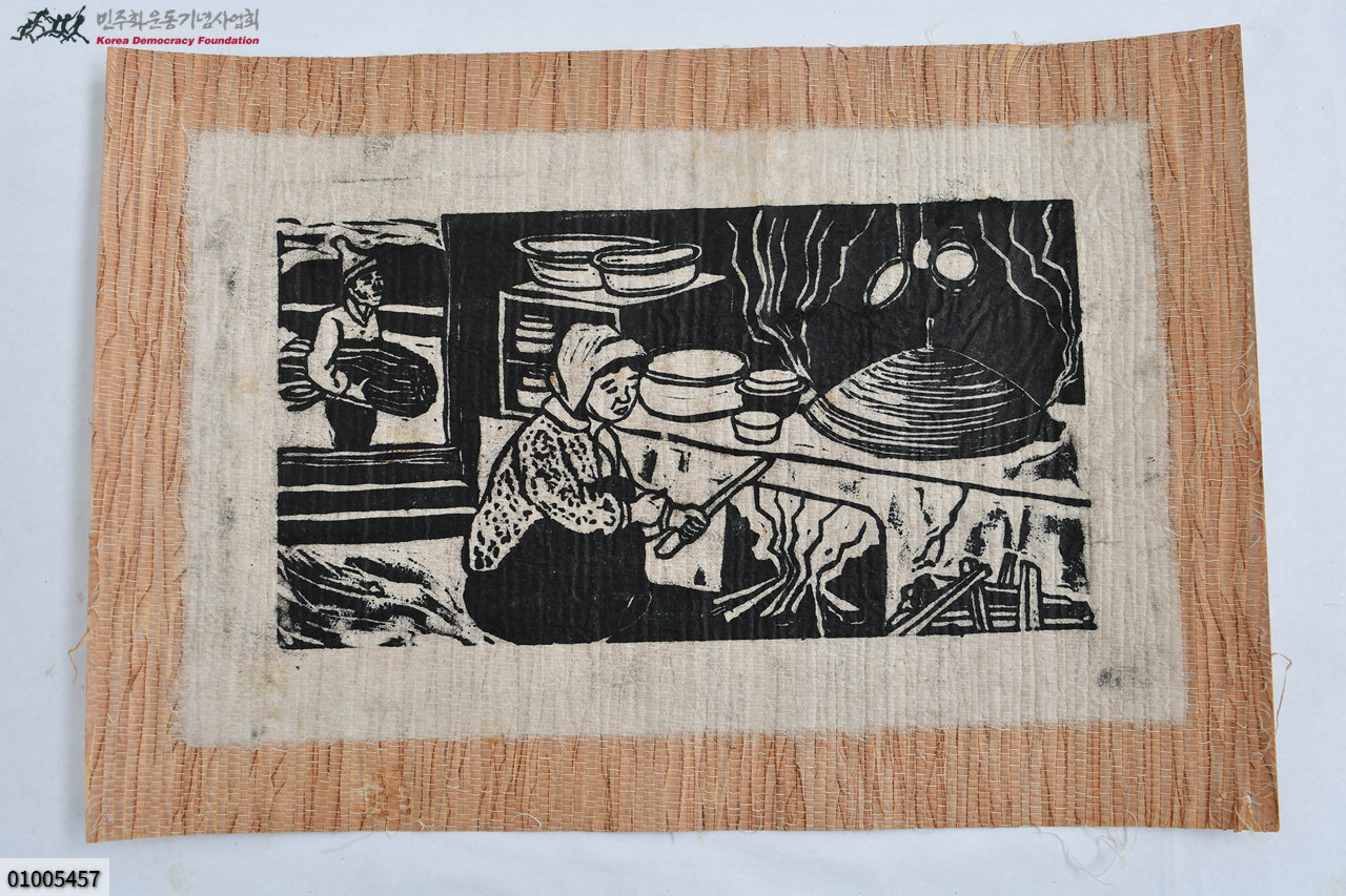 미상[한 여자가 아궁이 앞에 앉아 불을 피우고 있음]