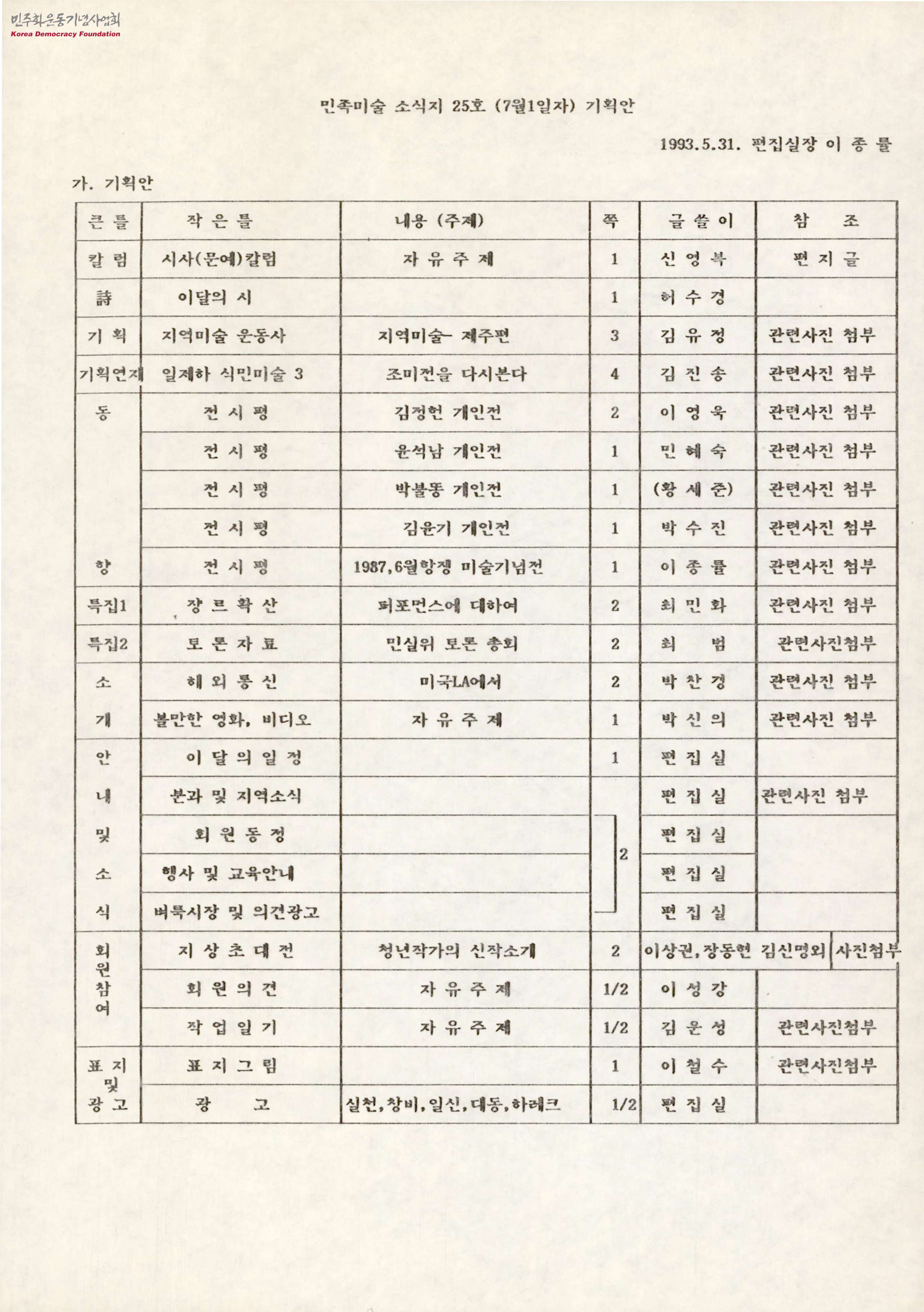 민족미술 소식지 25호 (7월 1일자) 기획안