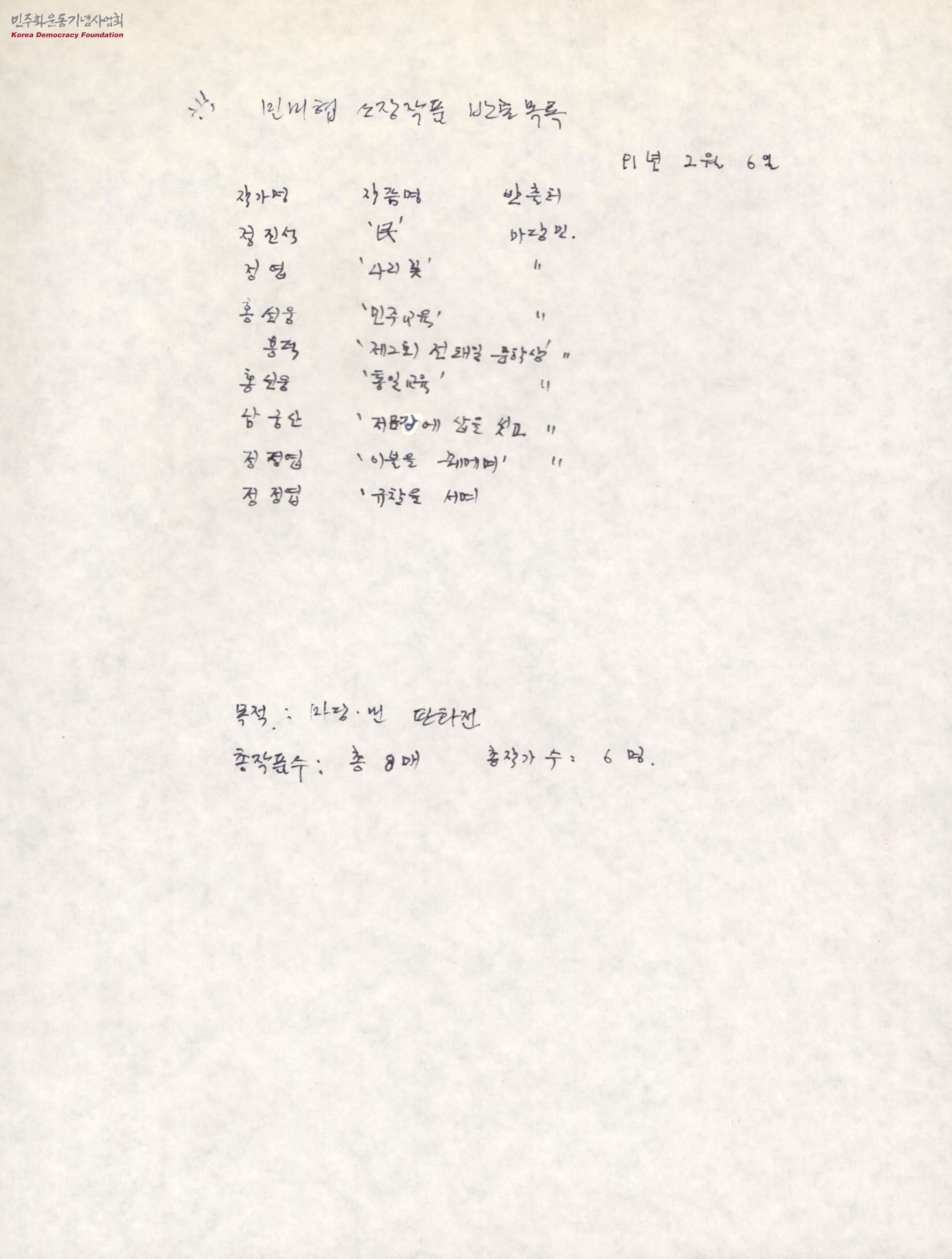 - 민미협에서 소장하고 있는 작품을 판화전을 위해 반출하고자 하여 적은 명단, 작가명과 작품명, 반출처, 목적 등의 정보가 담겨 있음