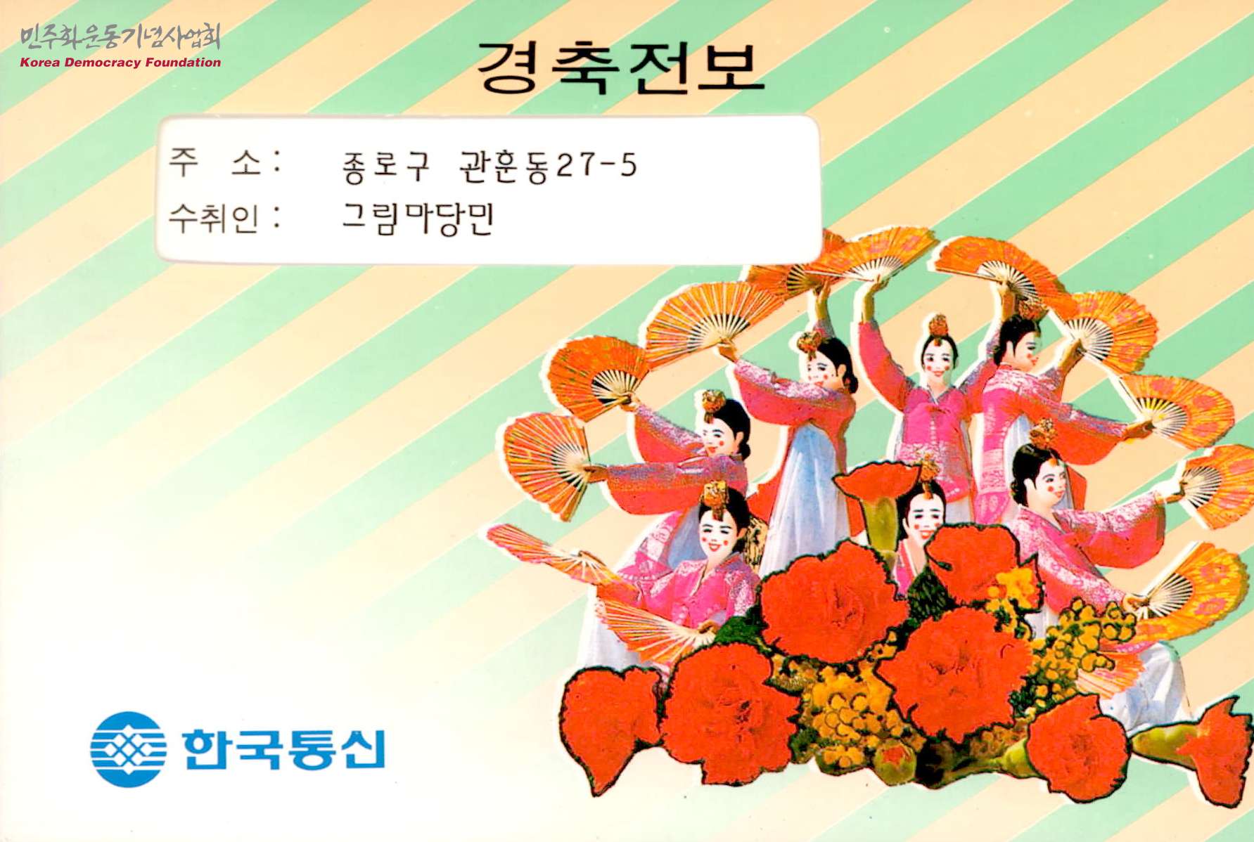 [부산 다다갤러리로부터 받은 경축전보]