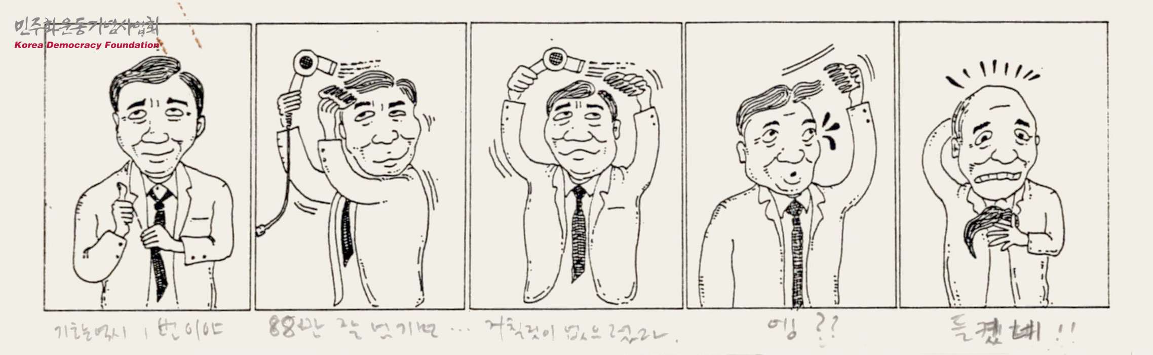- 노동조합에 대한 가입을 장려하는 만화로 88올림픽 이후의 특수를 노리는 기호 1번의 정치인 모습이 담긴 만화 1편과 노동조합을 통해 노동자들의 연대를 강조하여 자신들을 착취하고 해고로 위협하는 기업인들에게 함께 대항하자는 모습이 담겨 있음