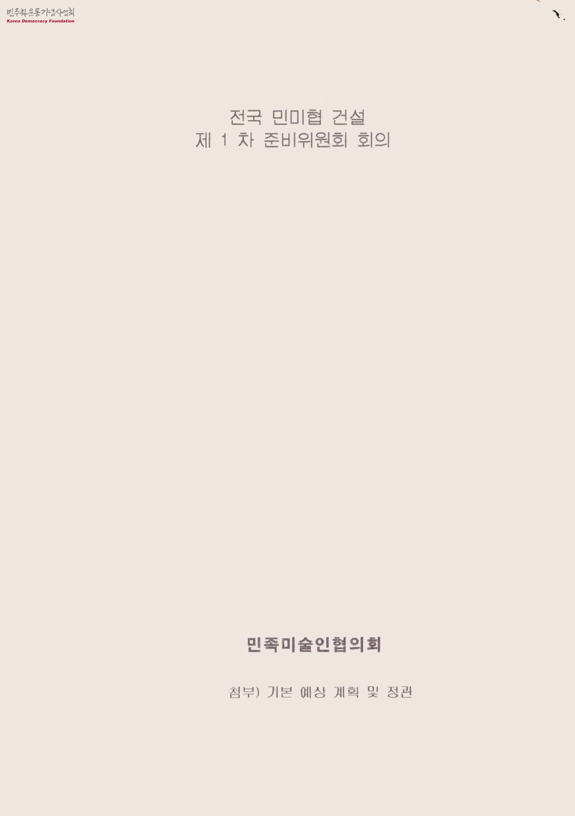 - 전국 민미협 건설 제1차 준비위원회 희의록으로 전국조직의 상에 관한 안과 조직 기구표, 조직 구성에 관한 안, 초기 예상 사업 등의 대한 내용이 담겨있음