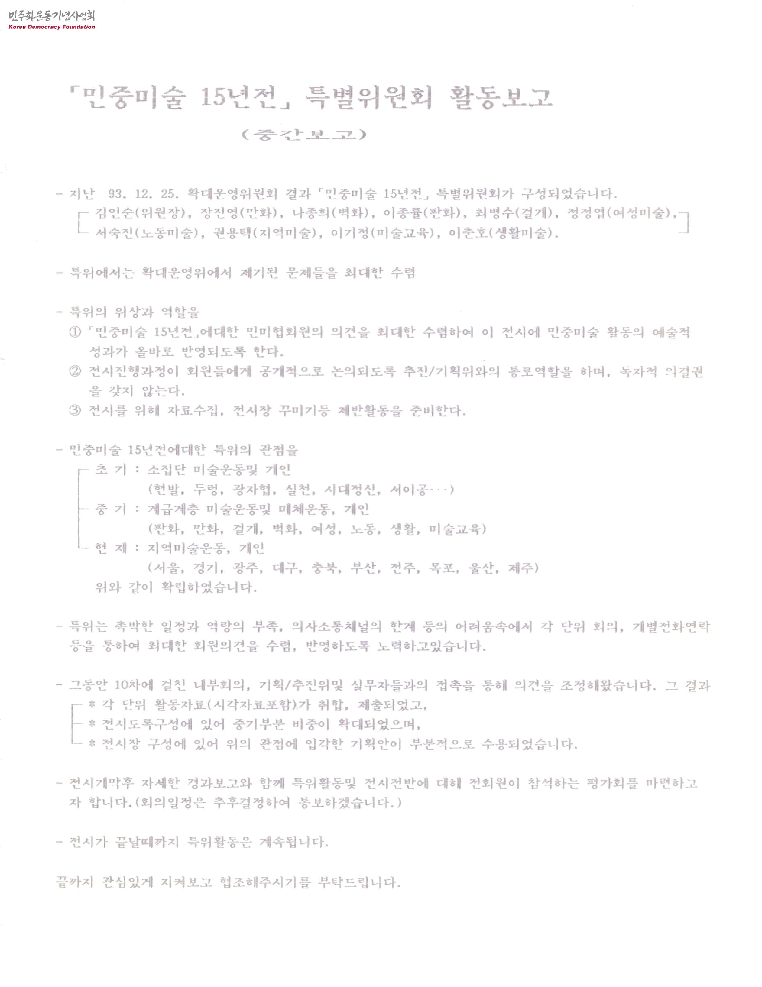 민중미술 15년전 특별위원회 활동보고(중간보고)