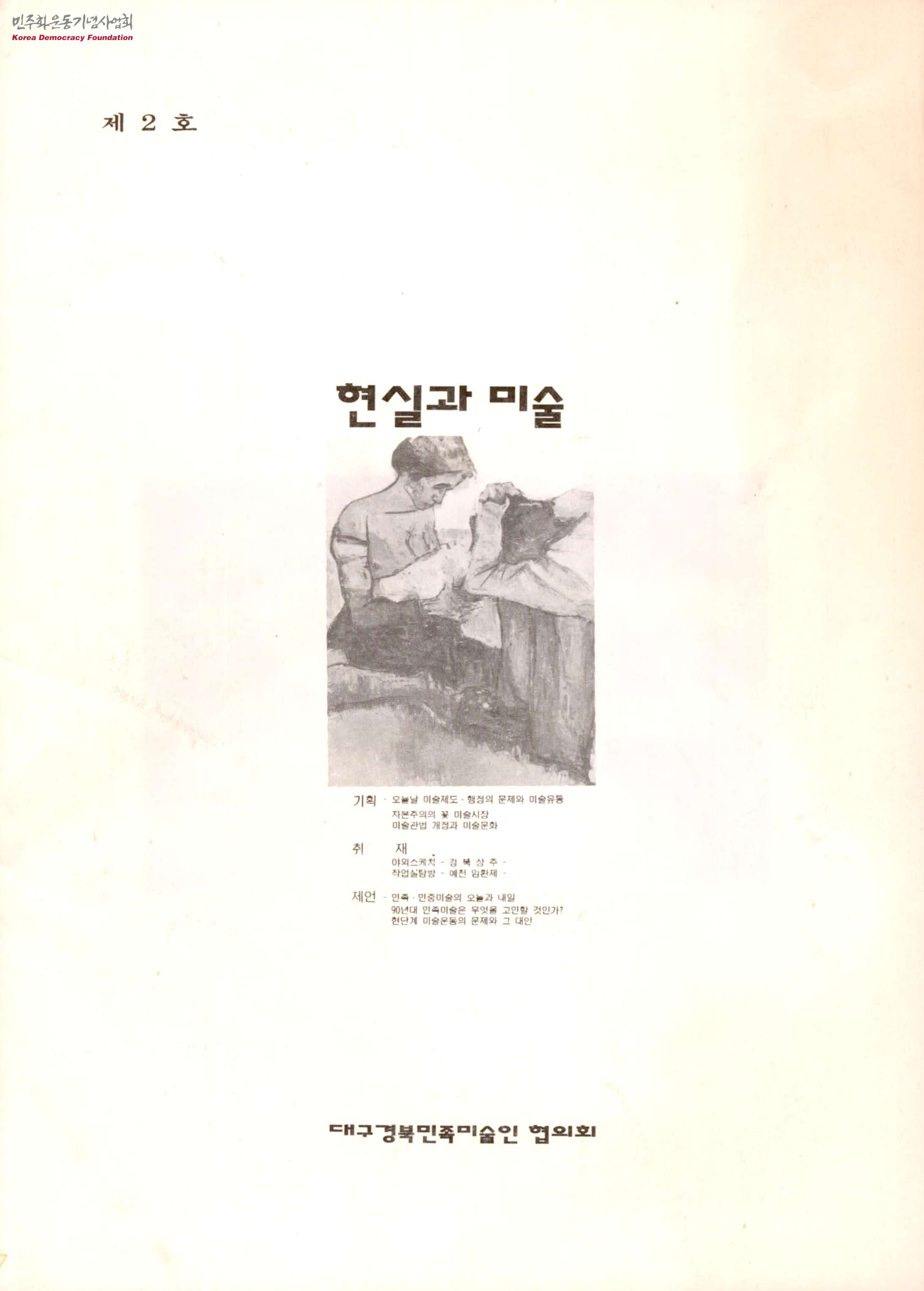 - 대구∙경북 민족 미술인 협의회에서 92년 발간한 현실과 미술 2호로 목차는 다음과 같이 구성되어 있음 권두시 지상전시 <현실과 미술>2호에 부쳐 기획 / 오늘날 미술제도∙행정의 문제와 미술유통 창작노트 만평 활동보고 / 대∙경민미협 상반기 활동보고 및 하반기 사업계획 연대사업부 실천보고 취재 만평 제언 / 민족∙민족미술의 오늘과 내일