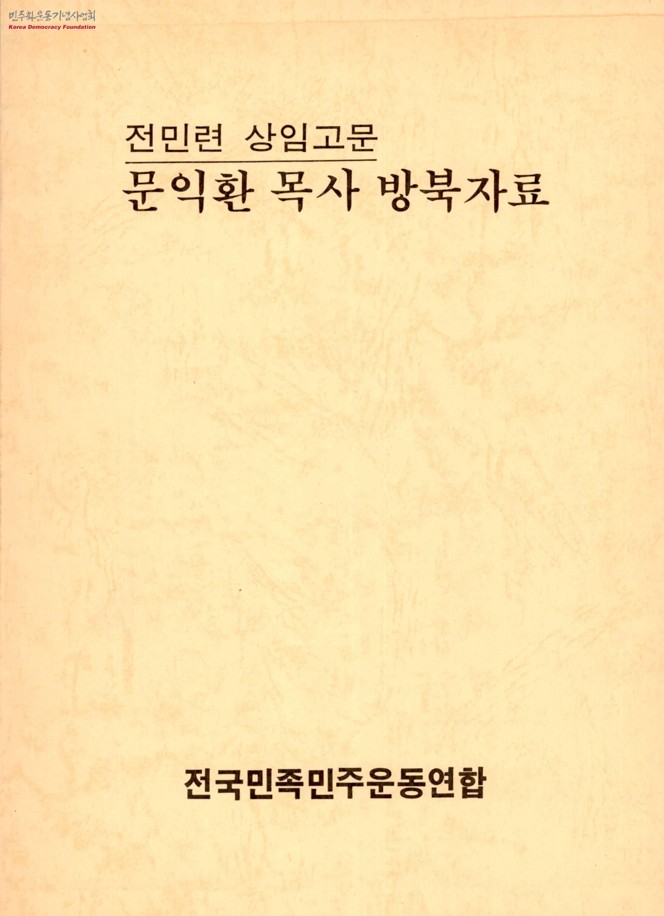 - 민족통일해방인 문익환 목사 약전, 문익환 목사 방북 성명서 전문, 문익환 목사 성명서 관련 기사 스크랩, 문익환 목사 신년시, 문익환 목사가 작성한 '연방제 통일의 3단계 과정' 글, 문익환 고문의 평양 방문에 관한 전민련의 발표문, 문익환 목사의 북부조국 방문을 적극 지지하는 범민족대회 북미주 추진본부 등 3개 연합의 입장문 등으로 구성된 문서
