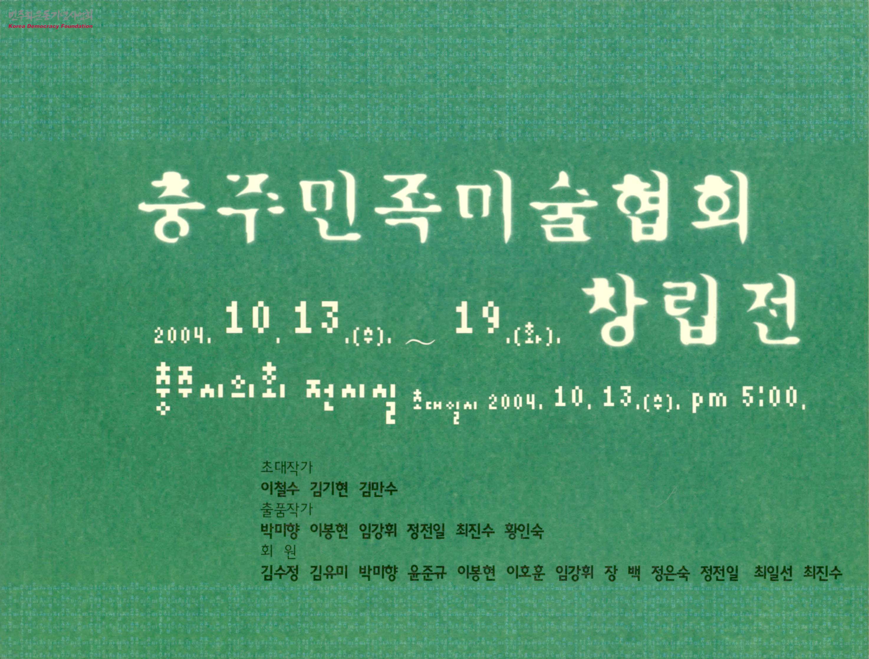 - 충주민족미술협회 창립전 초대 브로셔로, 초대 및 출품 작가의 간단한 약력과 함께 출품작을 소개하고 있으며 많은 참여를 부탁한다는 인사말이 포함되어 있음